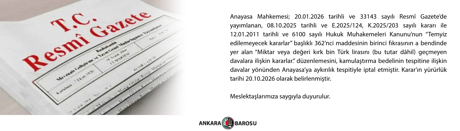 TÜRKİYE BAROLAR BİRLİĞİ BAŞKANLIĞININ 13.01.2026 TARİH, 2026/6 SAYILI AVUKATLIK RUHSATNAMELERİNİN DAMGA VERGİSİNE TABİ OLMADIĞI HAKKINDA DUYURUSU