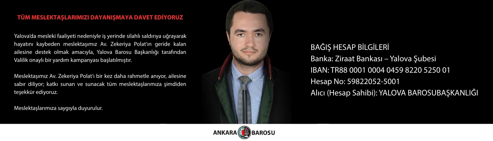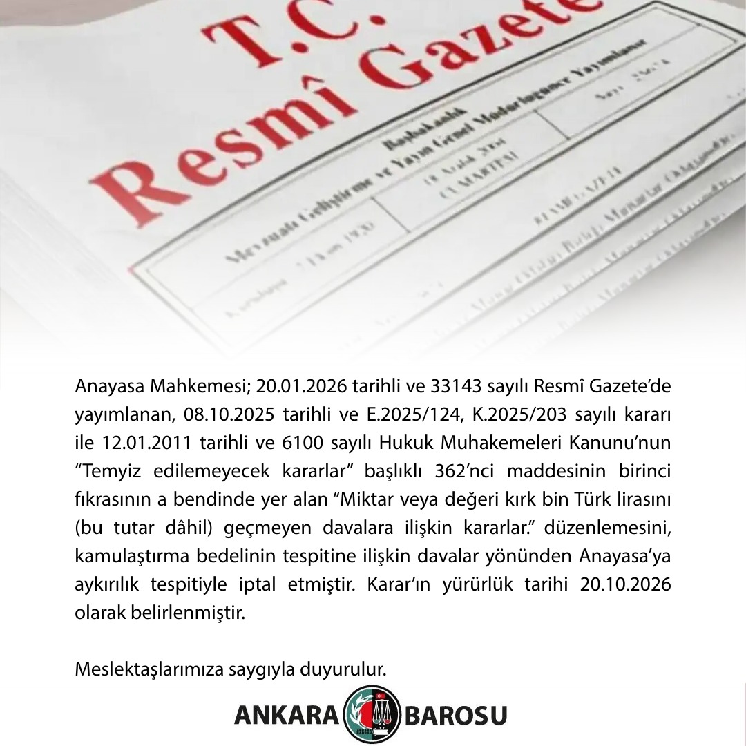 27.05.2009 tarihinde avukatlık mesleğine başlayan Baromuz üyesi Av. Ahmet Hamdi ÇELİK (20732) vefat etmiştir. Cenazesi, 09.01.2026 Cuma günü (bugün) Gölbaşı Mezarlığı Camii’nde kılınacak öğle namazının ardından Gölbaşı Mezarlığı’na defnedilecektir. Meslektaşımıza Allah'tan rahmet, ailesine ve Baromuz üyelerine başsağlığı dileriz.