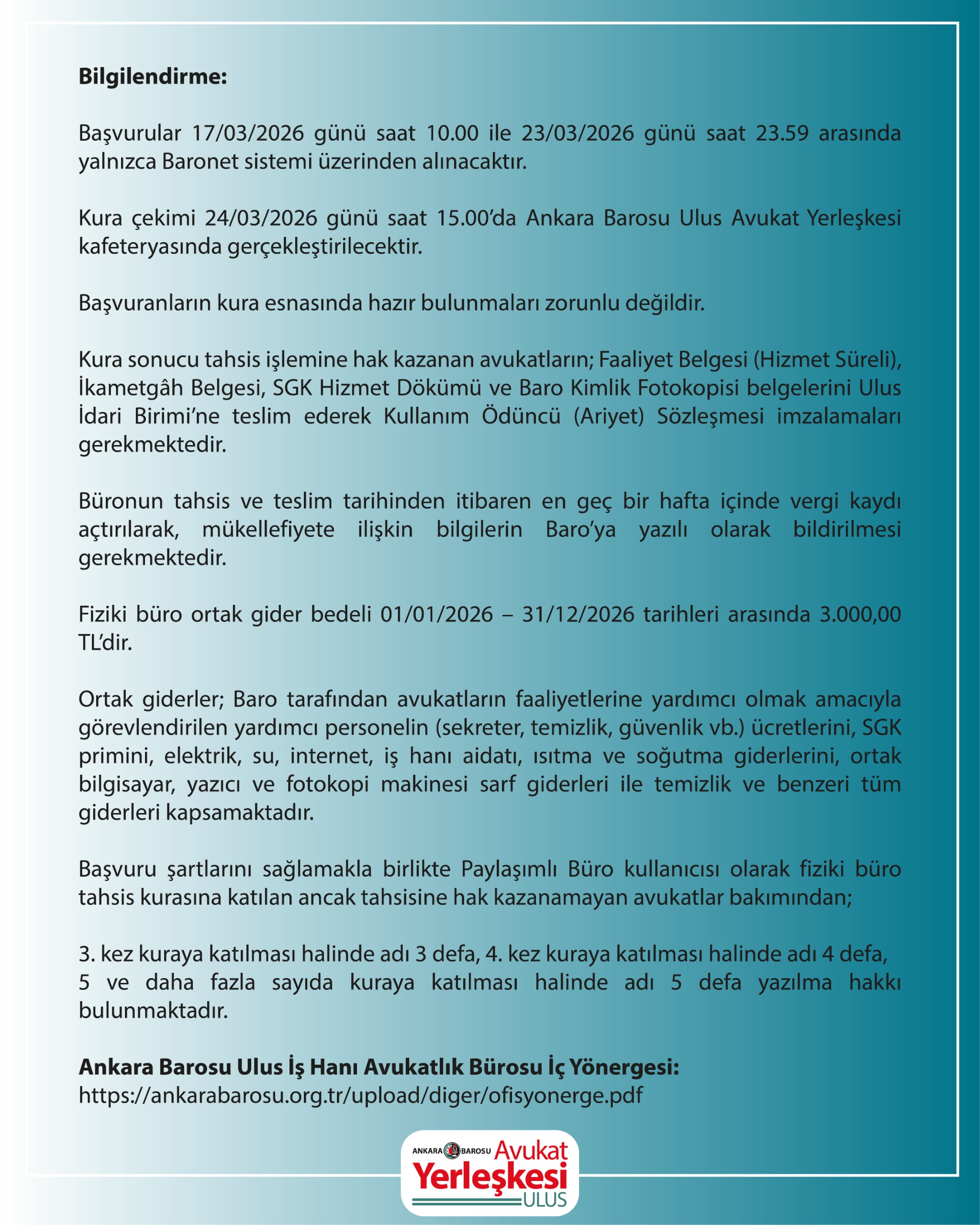 FİZİKİ BÜRO KURA DUYURUSU