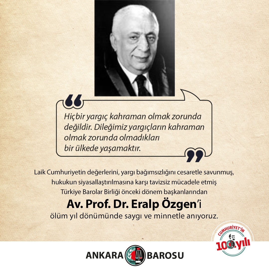 TÜRKİYE BAROLAR BİRLİĞİ ÖNCEKİ DÖNEM BAŞKANLARINDAN AV. PROF. DR. ERALP ÖZGEN'İ ÖLÜM YIL DÖNÜMÜNDE SAYGI VE MİNNETLE ANIYORUZ