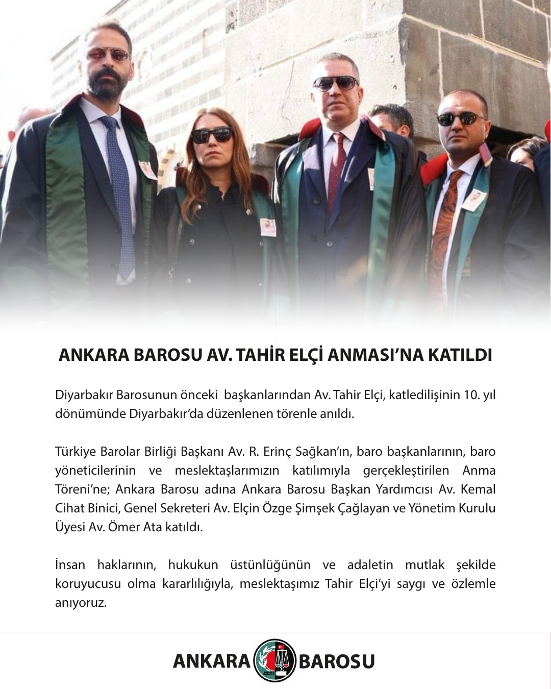 İnsan haklarının, hukukun üstünlüğünün ve adaletin mutlak şekilde koruyucusu olma kararlılığıyla, meslektaşımız Tahir Elçi’yi saygı ve özlemle anıyoruz.