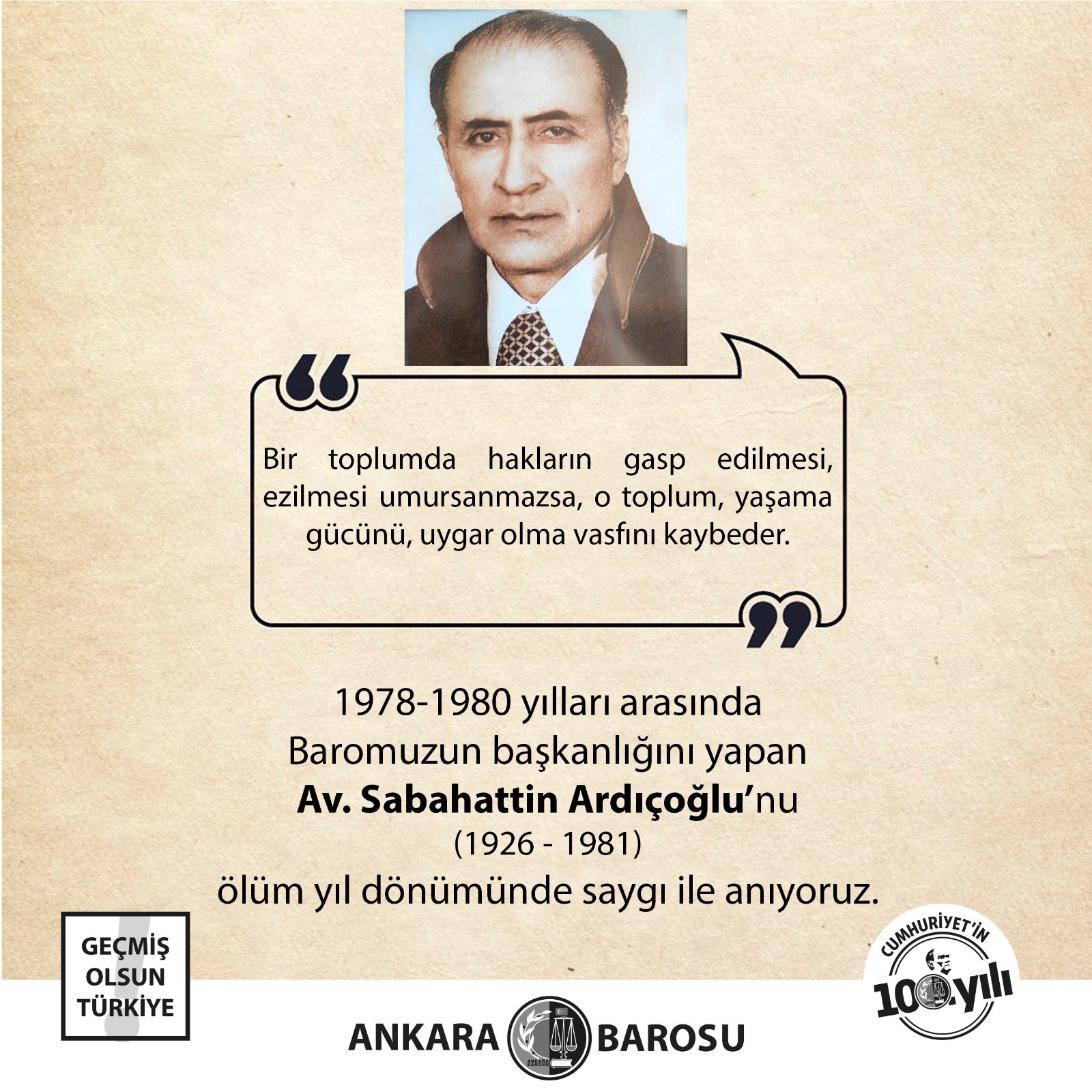 1978-1980 YILLARI ARASINDA BAROMUZUN BAŞKANLIĞINI YAPAN AV. SABAHATTİN ARDIÇOĞLU'NU ÖLÜM YILDÖNÜMDE SAYGI İLE ANIYORUZ.