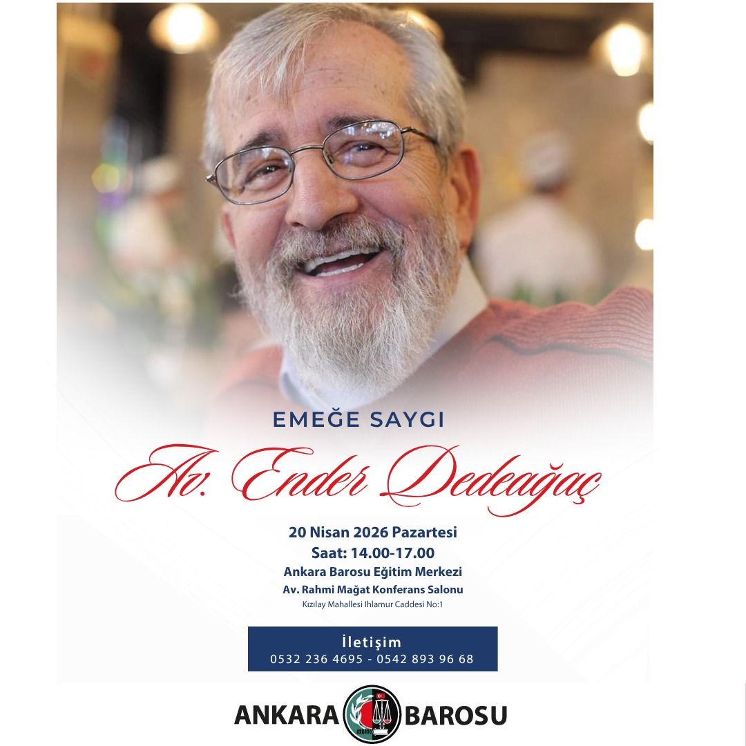 1992-1994 YILLARI ARASINDA ANKARA BAROSU DİSİPLİN KURULU ÜYELİĞİ GÖREVİNİ ÜSTLENEN AV. ENDER DEDEAĞAÇ’I ARAMIZDAN AYRILIŞININ 5. YILINDA ANIYORUZ.