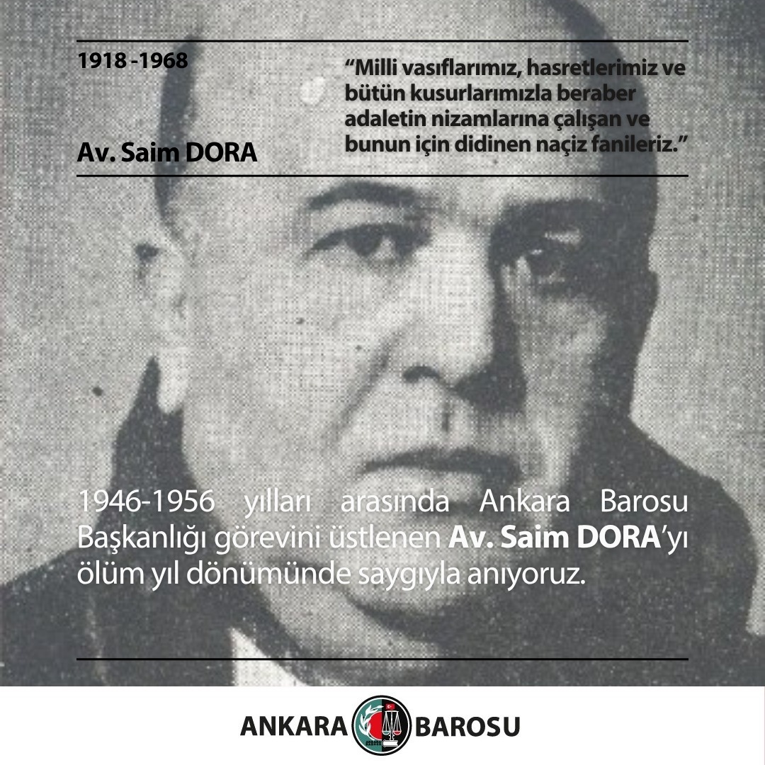 1946-1956 YILLARI ARASINDA ANKARA BAROSU BAŞKANLIĞI GÖREVİNİ ÜSTLENEN AV. SAİM DORA’YI ÖLÜM YIL DÖNÜMÜNDE SAYGIYLA ANIYORUZ