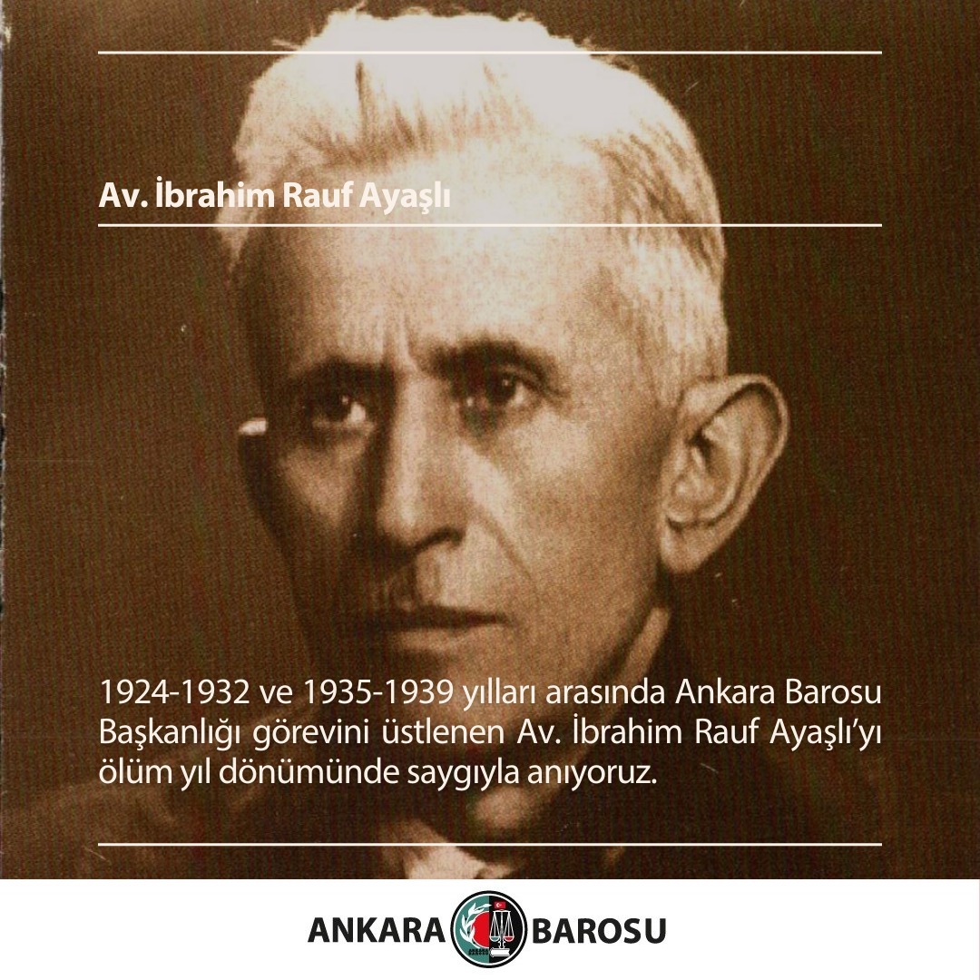 1924-1932 VE 1935-1939 YILLARI ARASINDA ANKARA BAROSU BAŞKANLIĞI GÖREVİNİ ÜSTLENEN AV. İBRAHİM RAUF AYAŞLI'YI ÖLÜM YIL DÖNÜMÜNDE SAYGIYLA ANIYORUZ
