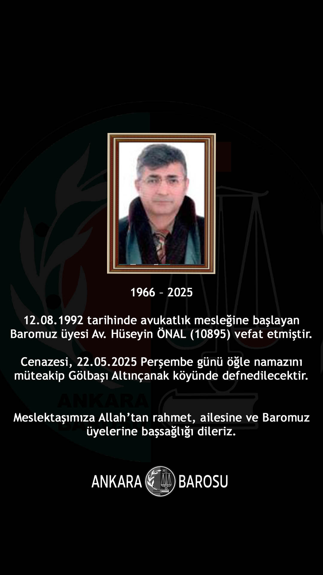 BAROMUZ ÜYESİ AV. HÜSEYİN ÖNAL (10895) VEFAT ETMİŞTİR