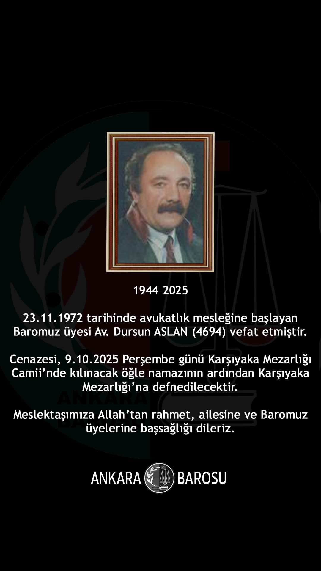 BAROMUZ ÜYESİ AV. DURSUN ASLAN (4694) VEFAT ETMİŞTİR