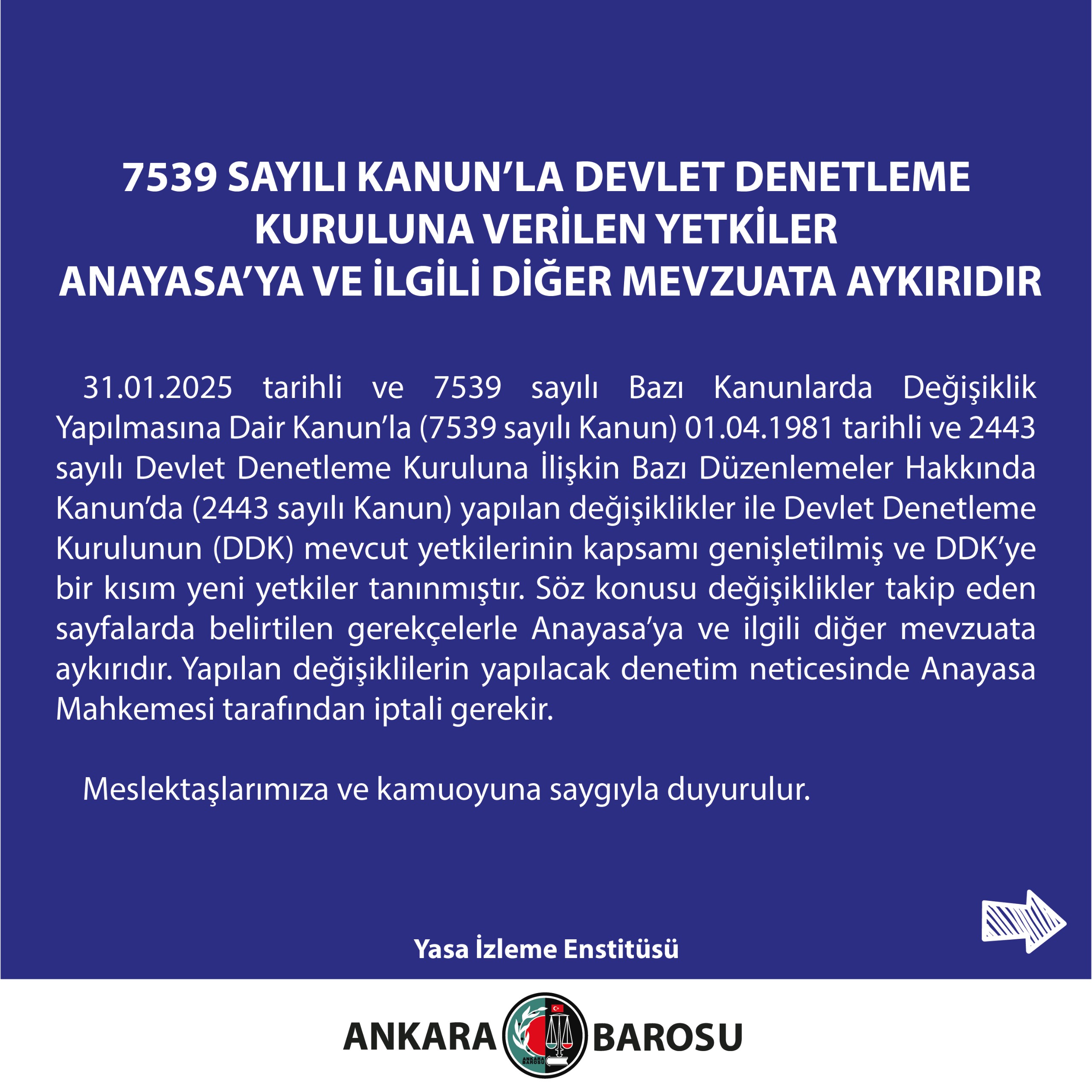 7539 SAYILI KANUN’LA DEVLET DENETLEME KURULUNA VERİLEN YETKİLER ANAYASA’YA VE İLGİLİ DİĞER MEVZUATA AYKIRIDIR