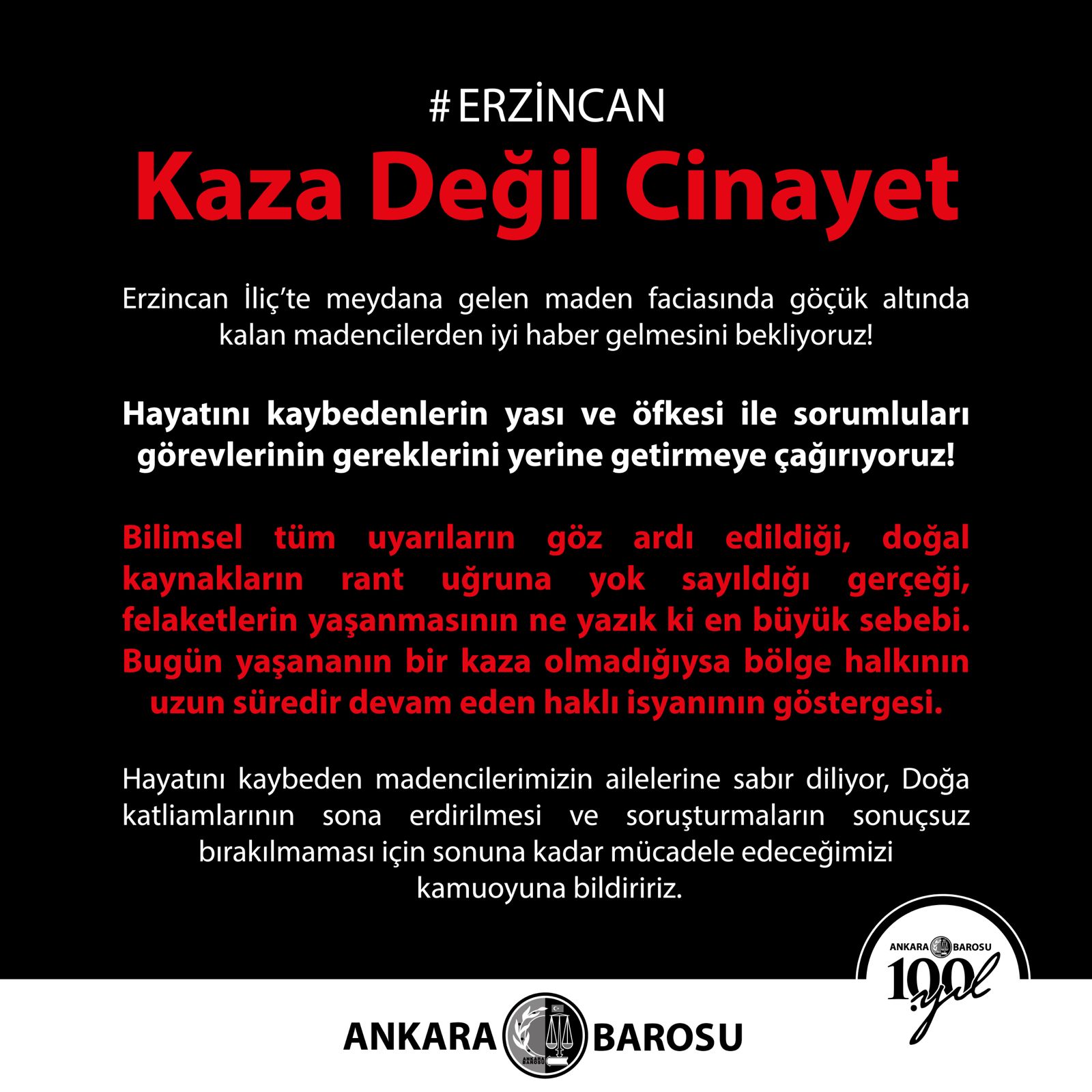 #ERZİNCAN KAZA DEĞİL CİNAYET
