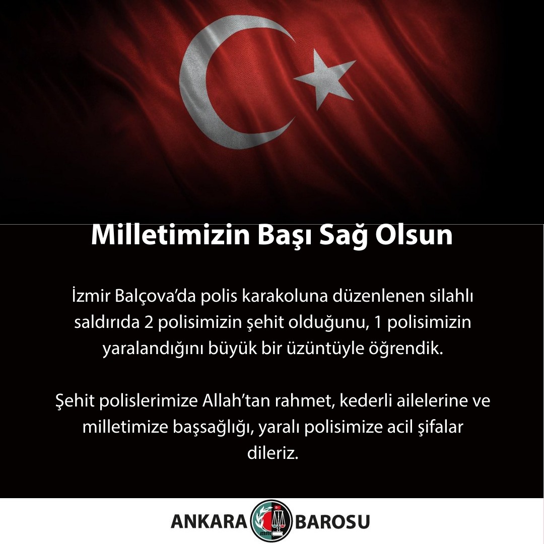 İzmir Balçova’da polis karakoluna düzenlenen silahlı saldırıda 2 polisimizin şehit olduğunu, 1 polisimizin yaralandığını büyük bir üzüntüyle öğrendik. Şehit polislerimize Allah’tan rahmet, kederli ailelerine ve milletimize başsağlığı, yaralı polisimize acil şifalar dileriz.