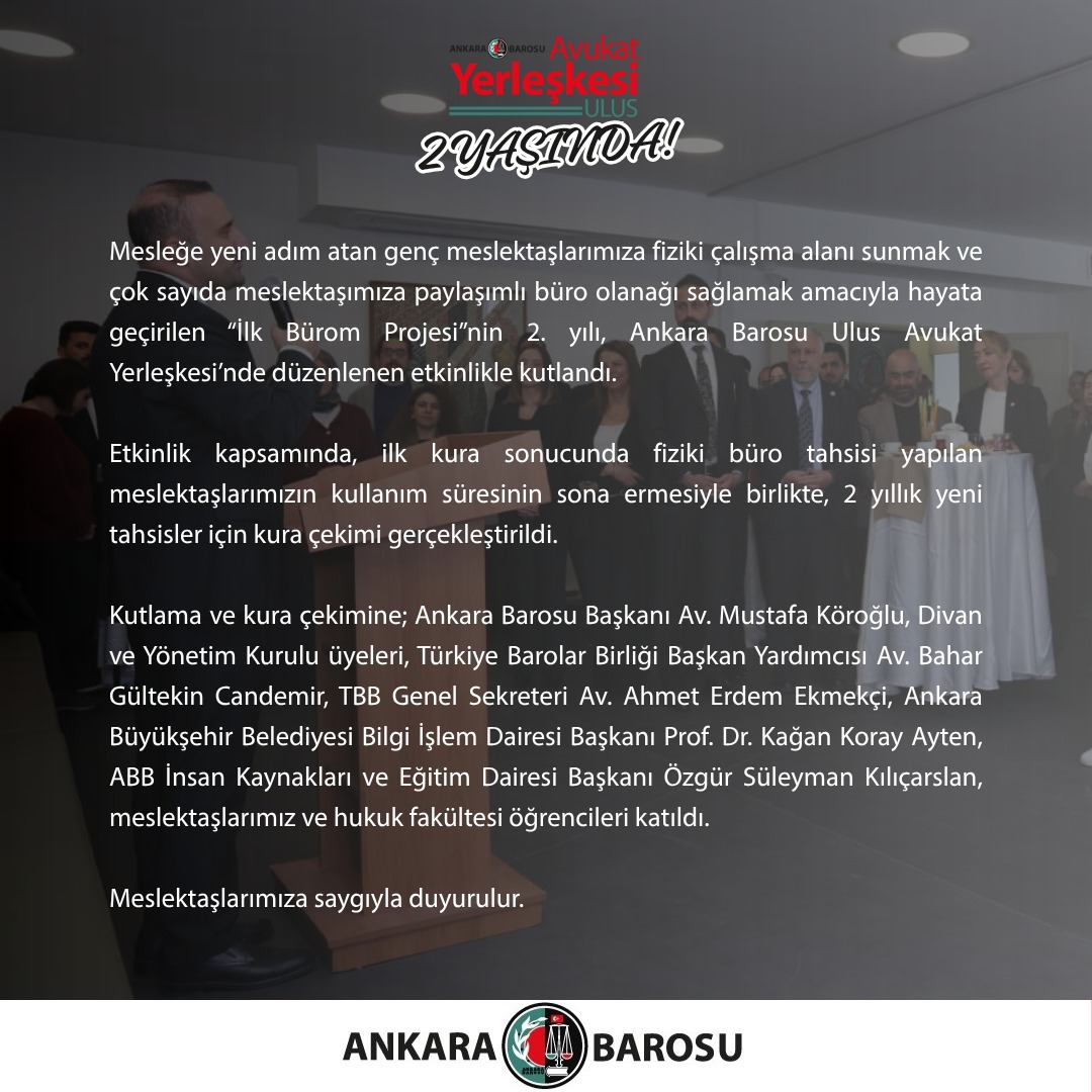 ANKARA BAROSU ULUS AVUKAT YERLEŞKESİ 2 YAŞINDA
