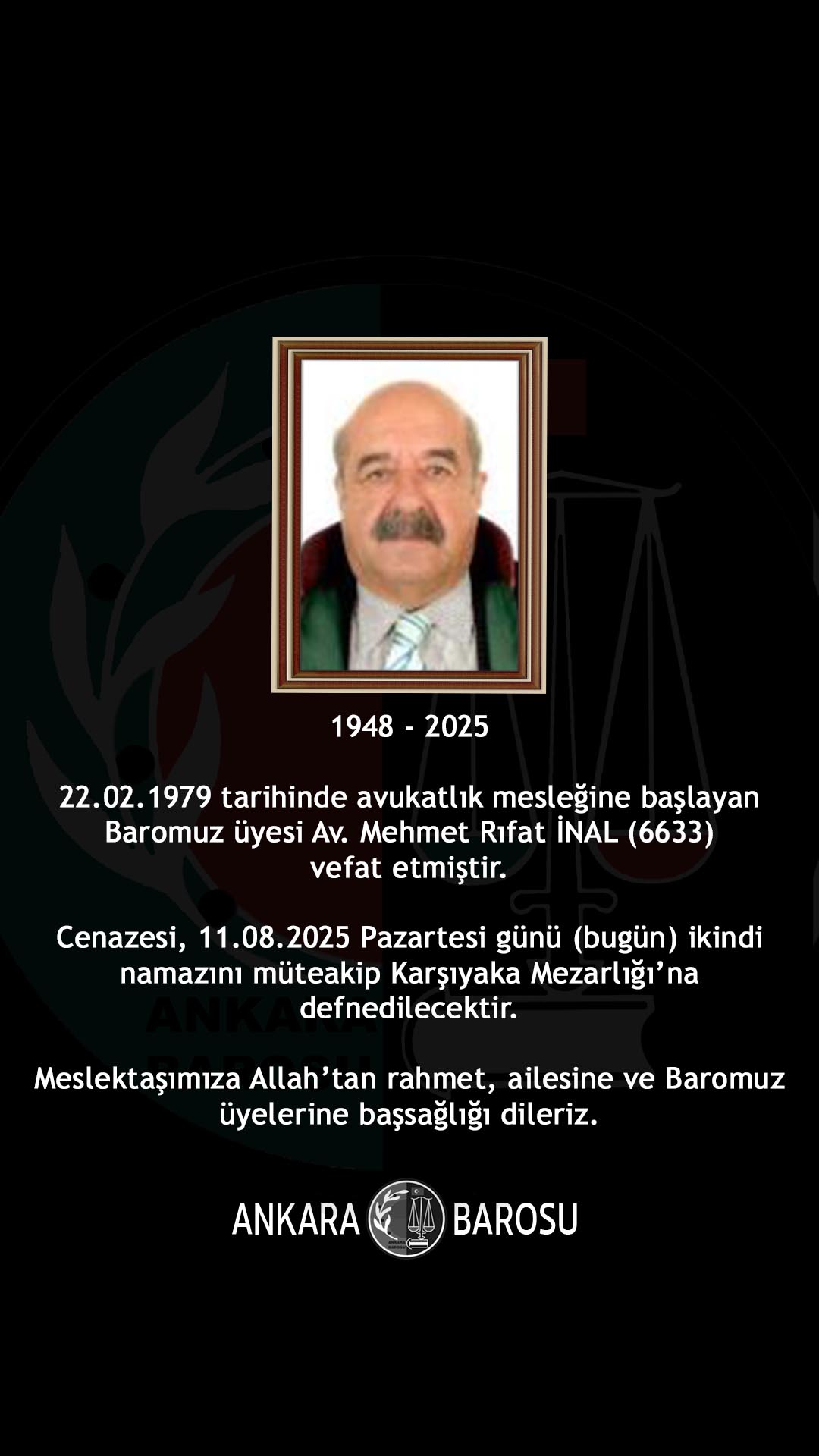 BAROMUZ ÜYESİ AV. MEHMET RIFAT İNAL (6633) VEFAT ETMİŞTİR