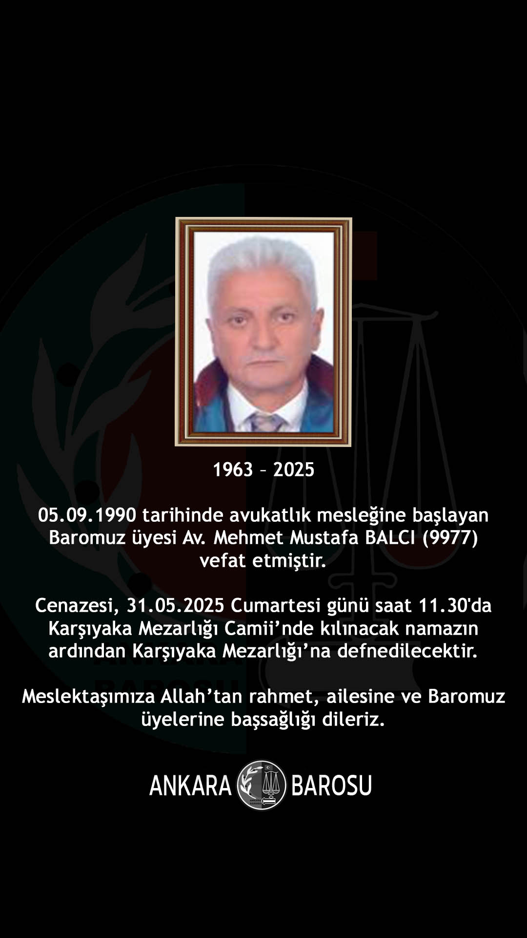 BAROMUZ ÜYESİ AV. MEHMET MUSTAFA BALCI (9977) VEFAT ETMİŞTİR