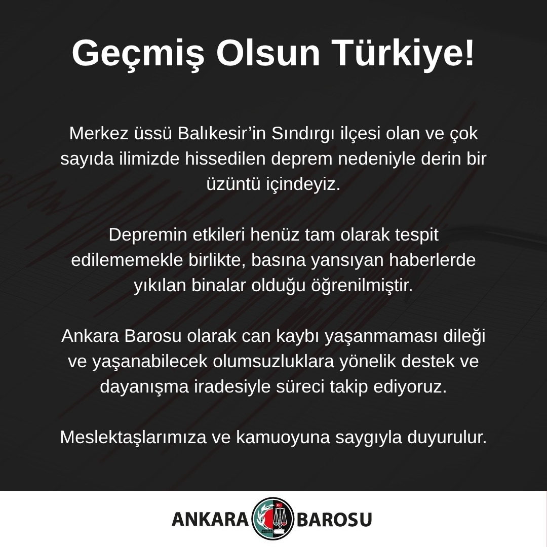 Ankara Barosu olarak can kaybı yaşanmaması dileği ve yaşanabilecek olumsuzluklara yönelik destek ve dayanışma iradesiyle süreci takip ediyoruz.
