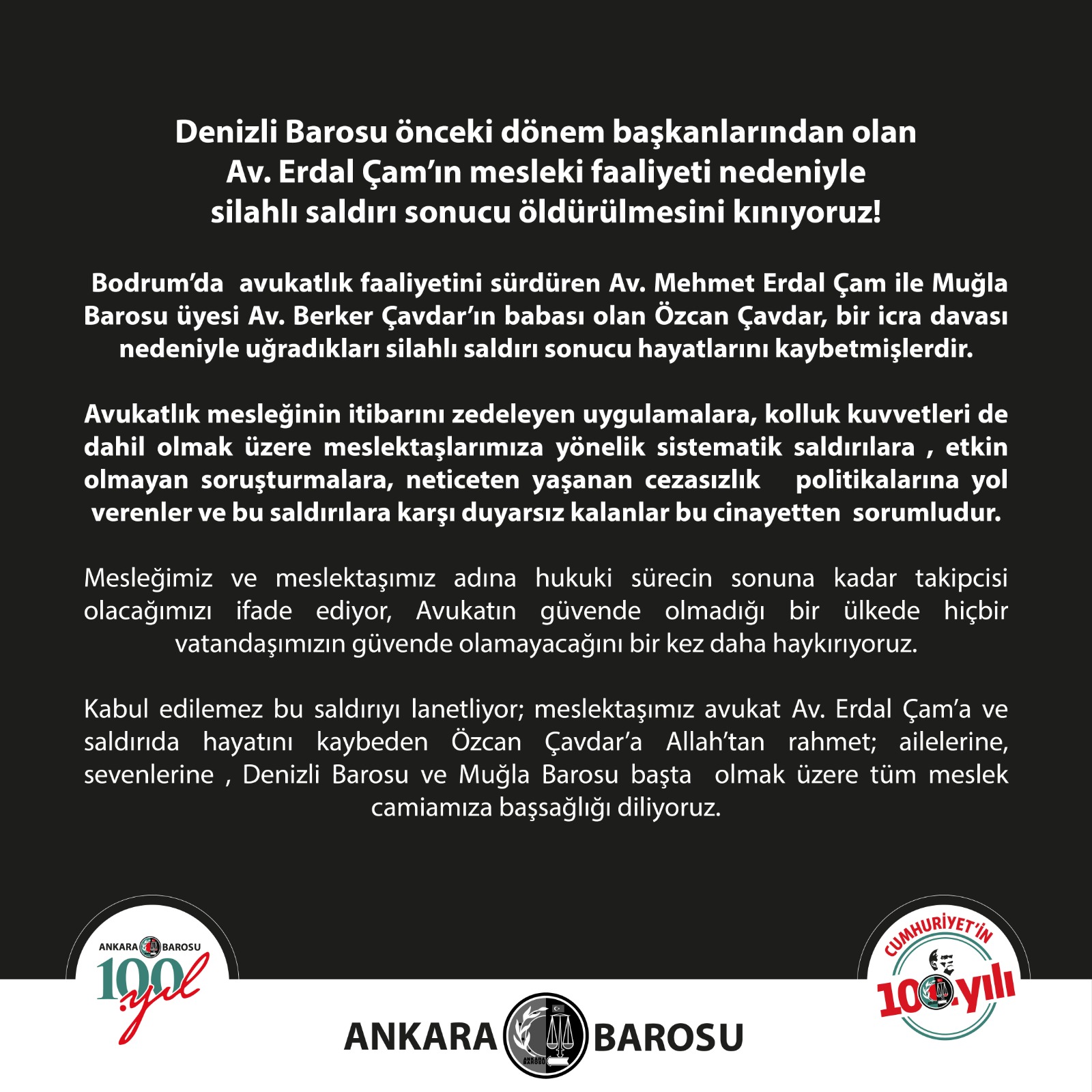 DENİZLİ BAROSU ÖNCEKİ DÖNEM BAŞKANLARINDAN OLAN AV. ERDAL ÇAM'IN NESLEKİ FAALİYETİ NEDENİYLE SİLAHLI SALDIRI SONUCU ÖLDÜRÜLMESİNİ KINIYORUZ!