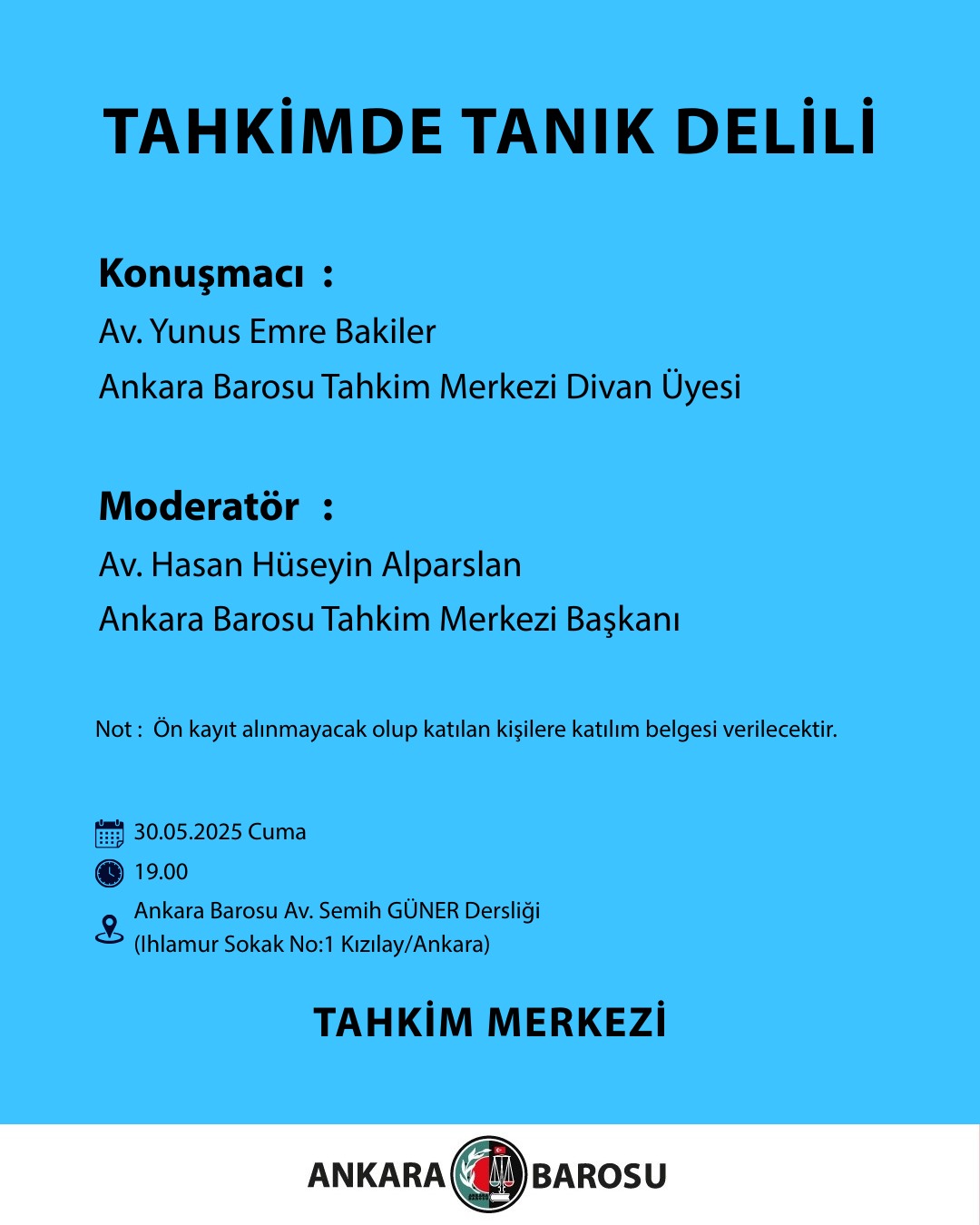 30/05/2025 tarihinde 19.00-21.00 saatleri arasında ABEM Av. Semih GÜNER Dersliği