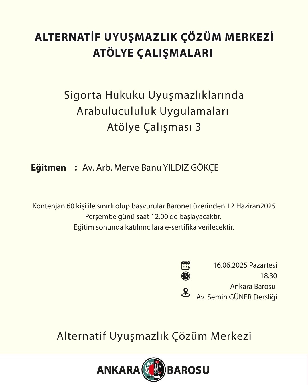 16.06.2025 18.30-20.30 saatleri, arasında ABEM Av. Semih GÜNER Dersliği