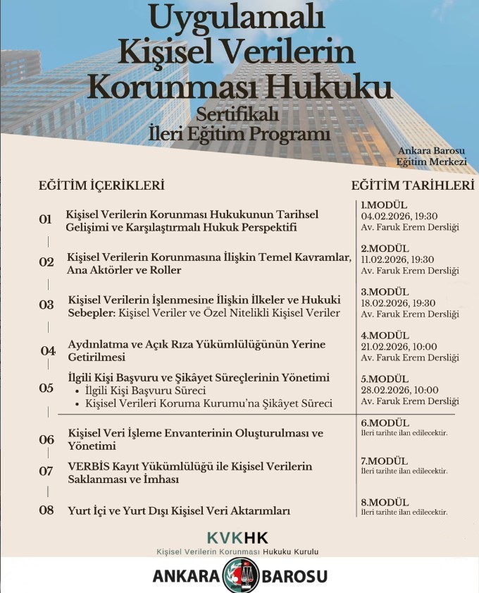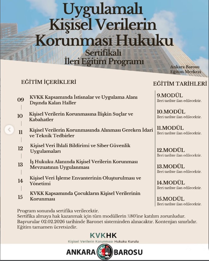 UYGULAMALI KİŞİSEL VERİLERİN KORUNMASI HUKUKU SERTİFİKALI İLERİ EĞİTİM PROGRAMI
