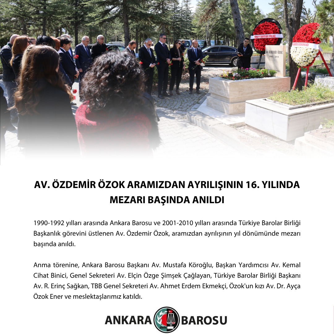 1990-1992 yılları arasında Ankara Barosu ve 2001-2010 yılları arasında Türkiye Barolar Birliği Başkanlık görevini üstlenen Av. Özdemir Özok, aramızdan ayrılışının yıl dönümünde mezarı başında anıldı.