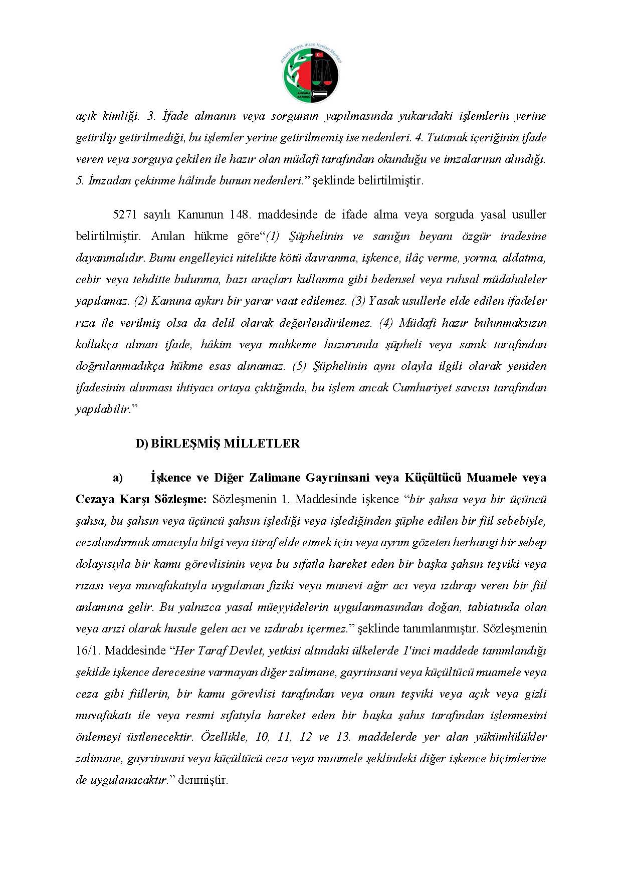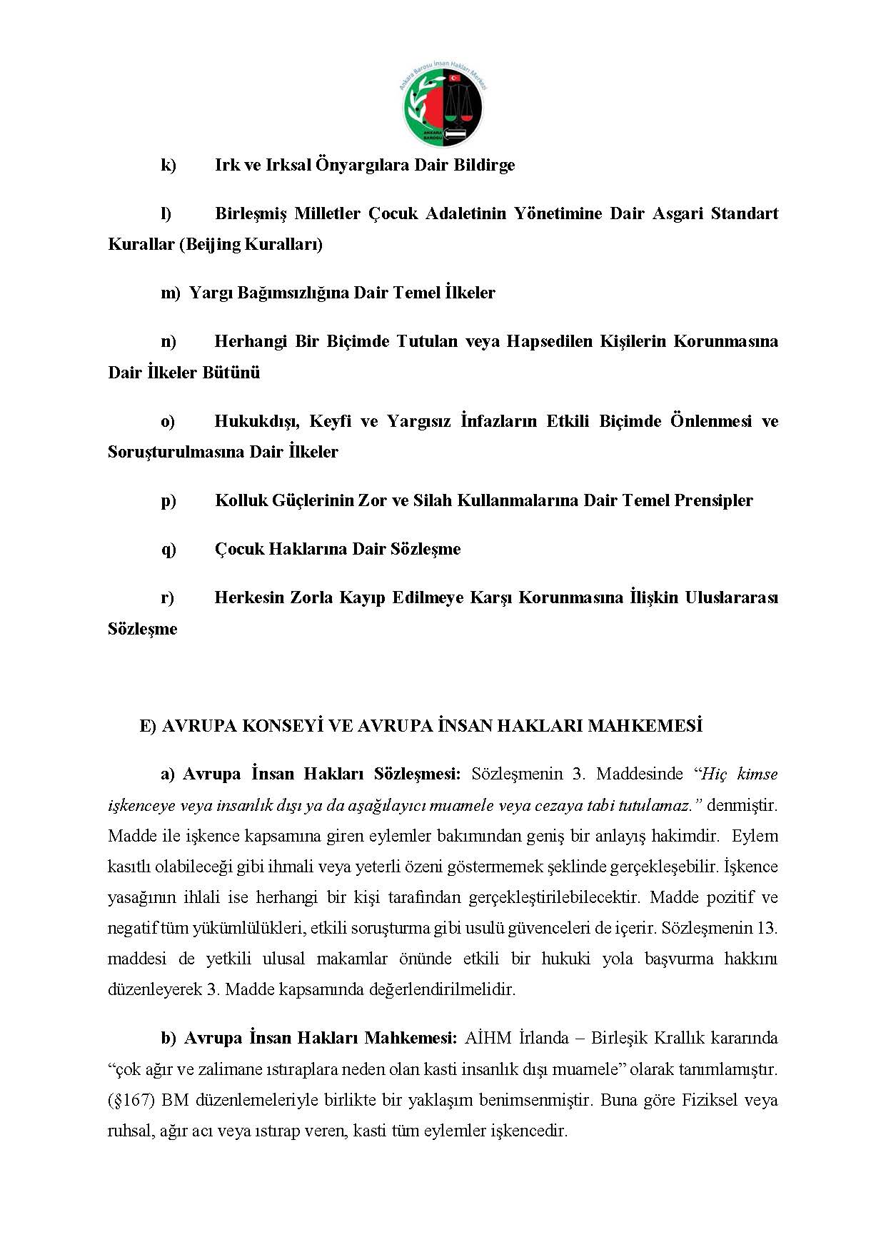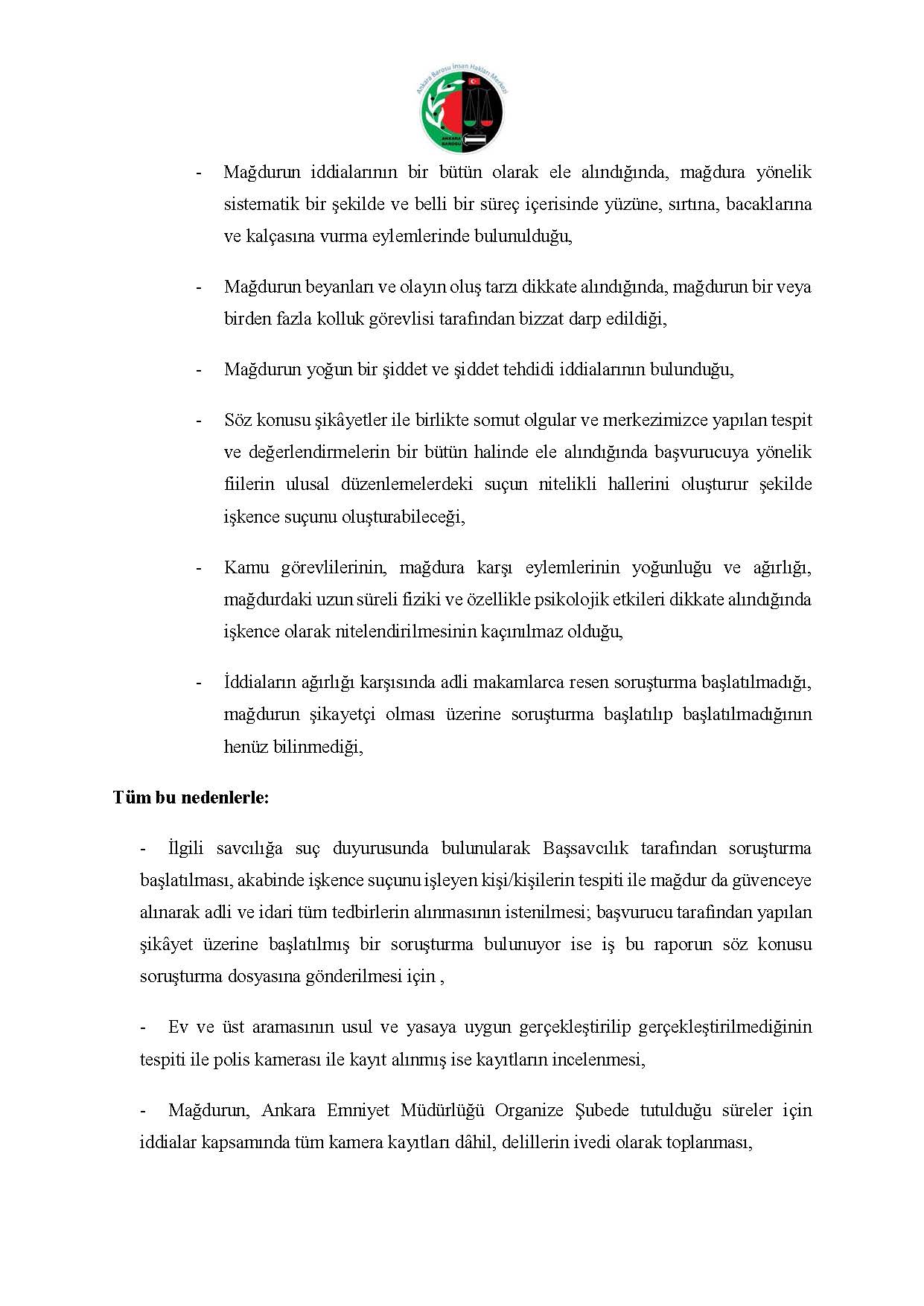 ANKARA BAROSU İNSAN HAKLARI MERKEZİ M.K. BAŞVURUSU RAPORU