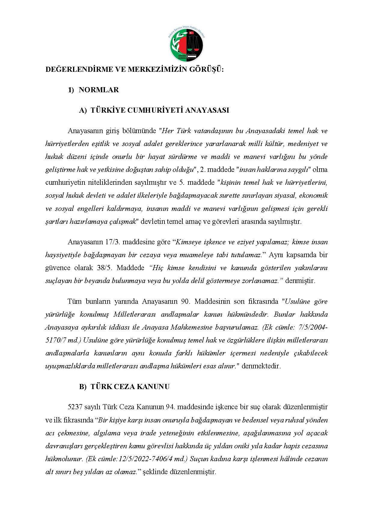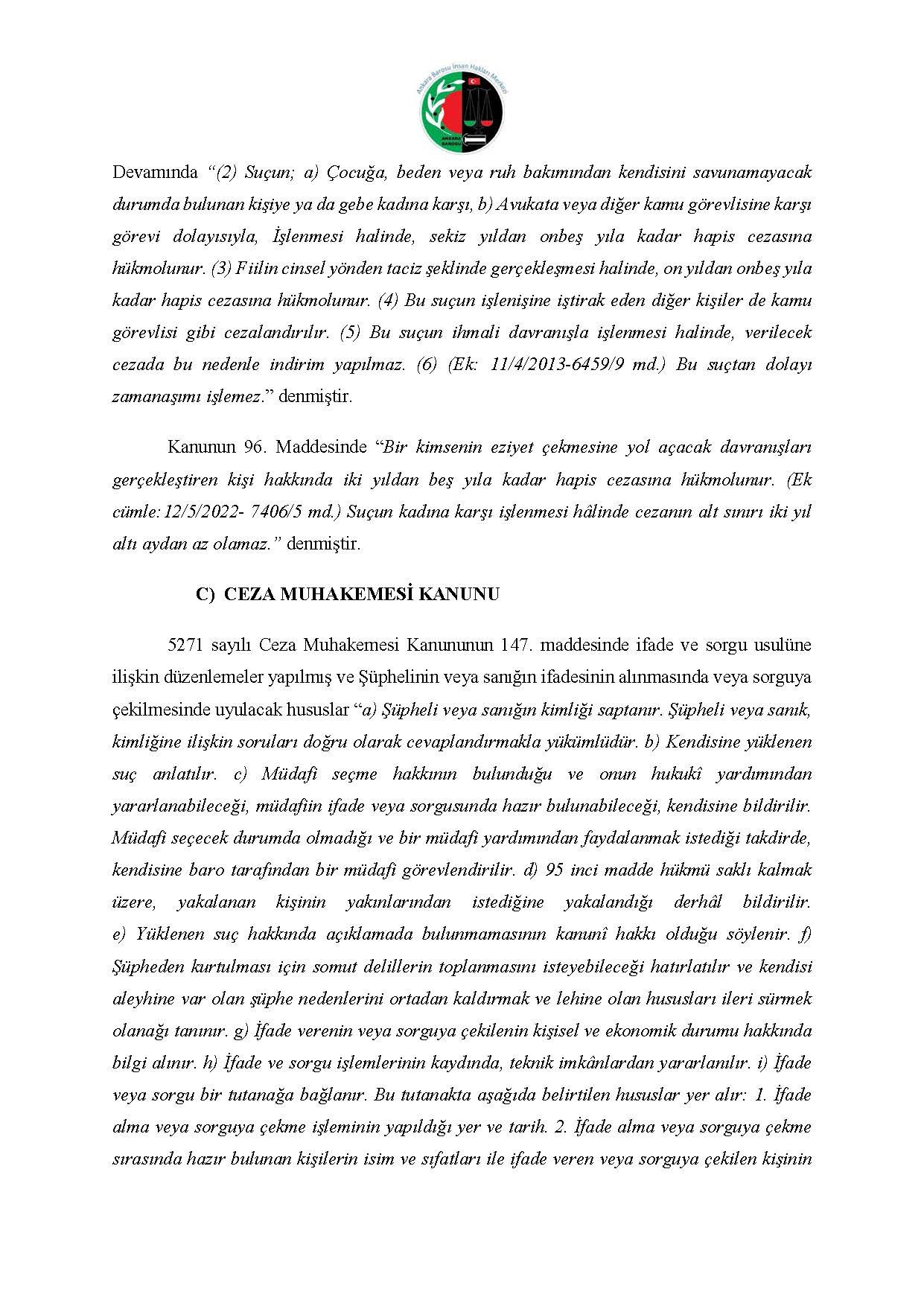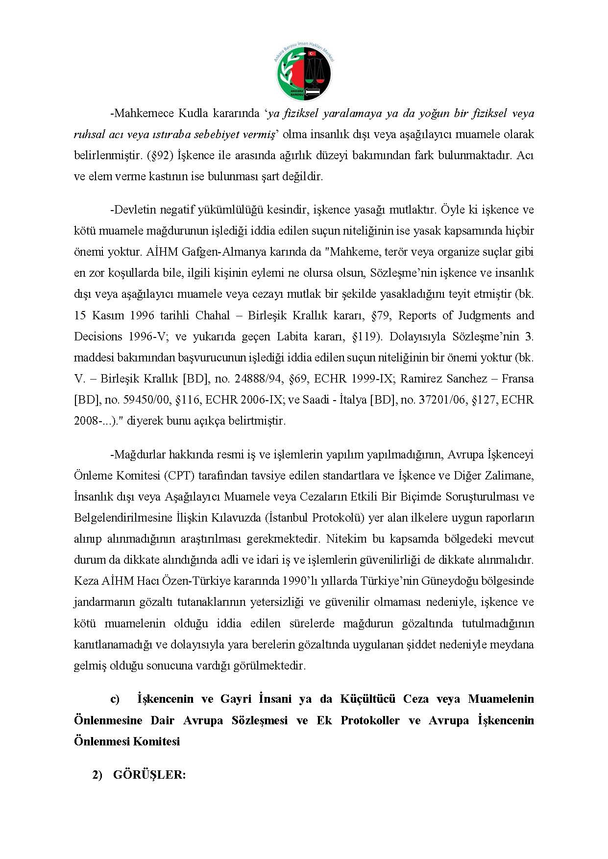 ANKARA BAROSU İNSAN HAKLARI MERKEZİ M.K. BAŞVURUSU RAPORU