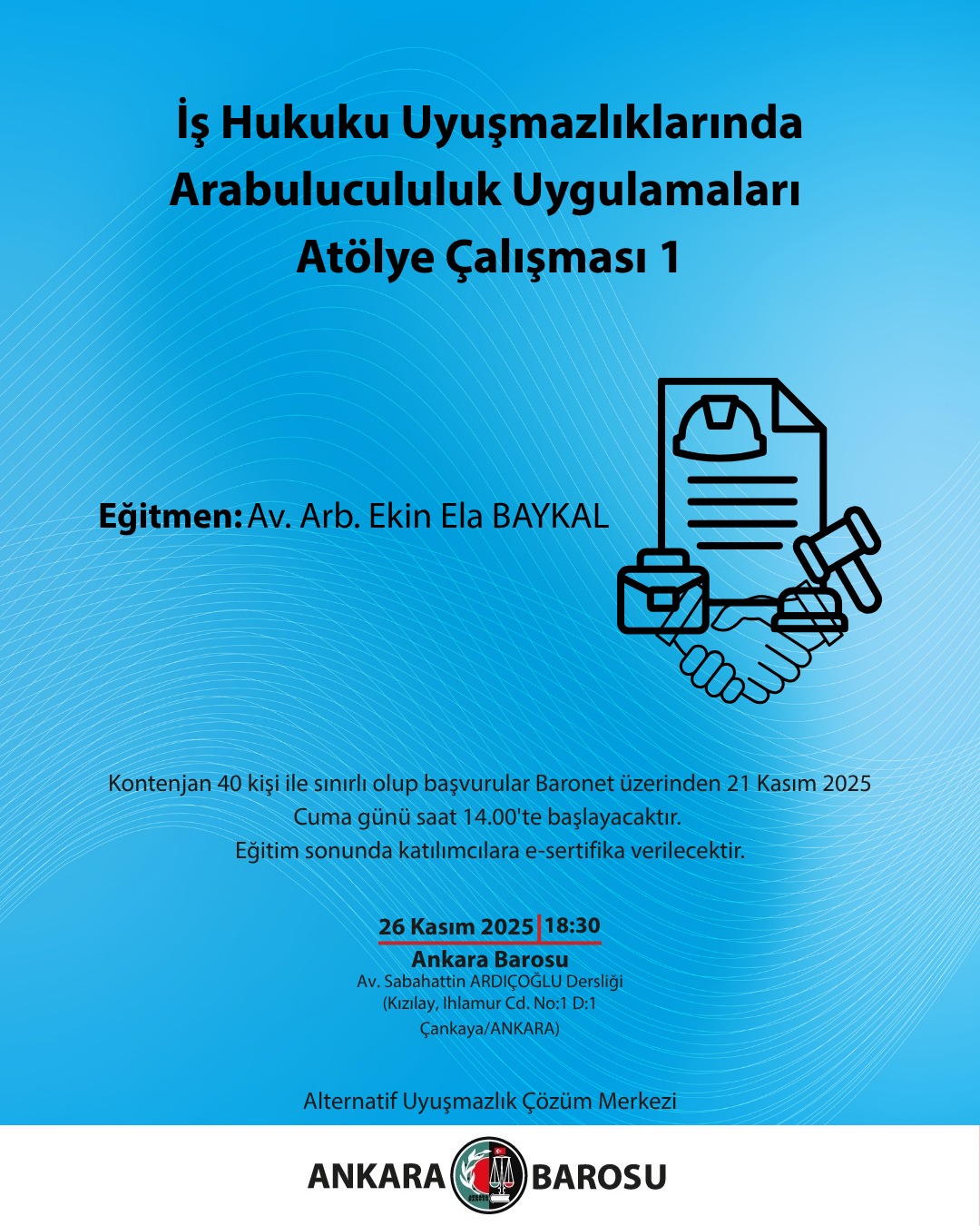 İş Hukuku Uyuşmazlıklarında Arabuluculuk Uygulamaları Atölye Çalışması 1