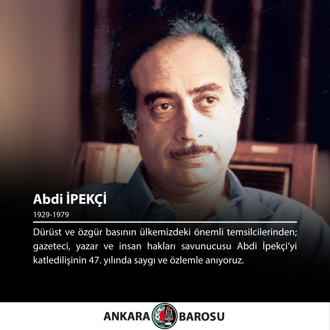 DÜRÜST VE ÖZGÜR BASININ ÜLKEMİZDEKİ ÖNEMLİ TEMSİLCİLERİNDEN; GAZETECİ, YAZAR VE İNSAN HAKLARI SAVUNUCUSU ABDİ İPEKÇİ’Yİ KATLEDİLİŞİNİN 47. YILINDA SAYGI VE ÖZLEMLE ANIYORUZ.