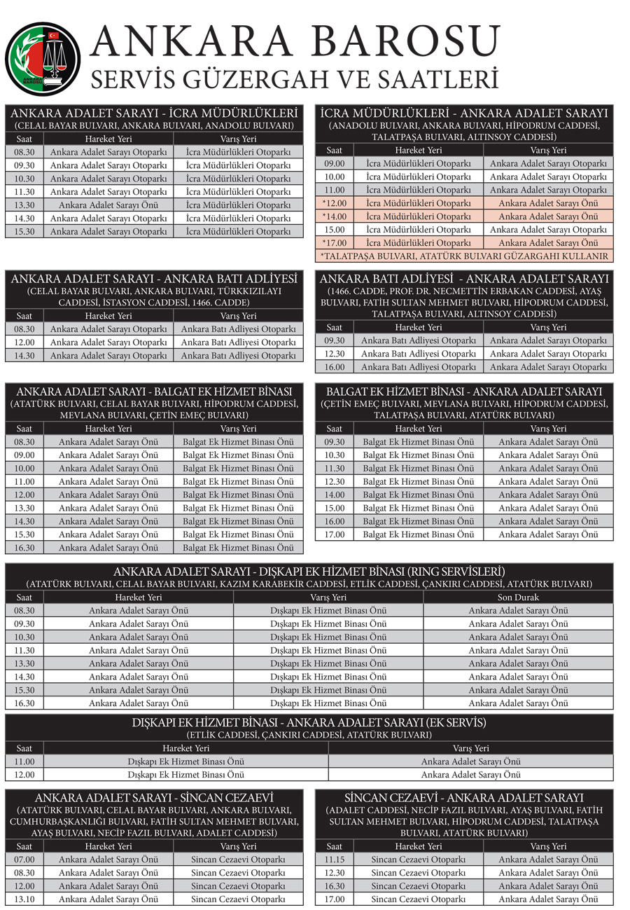 | 08:30 | ANKARA ADALET SARAYI ÖNÜ | DIŞKAPI EK HİZMET BİNASI ÖNÜ | ANKARA ADALET SARAYI ÖNÜ |