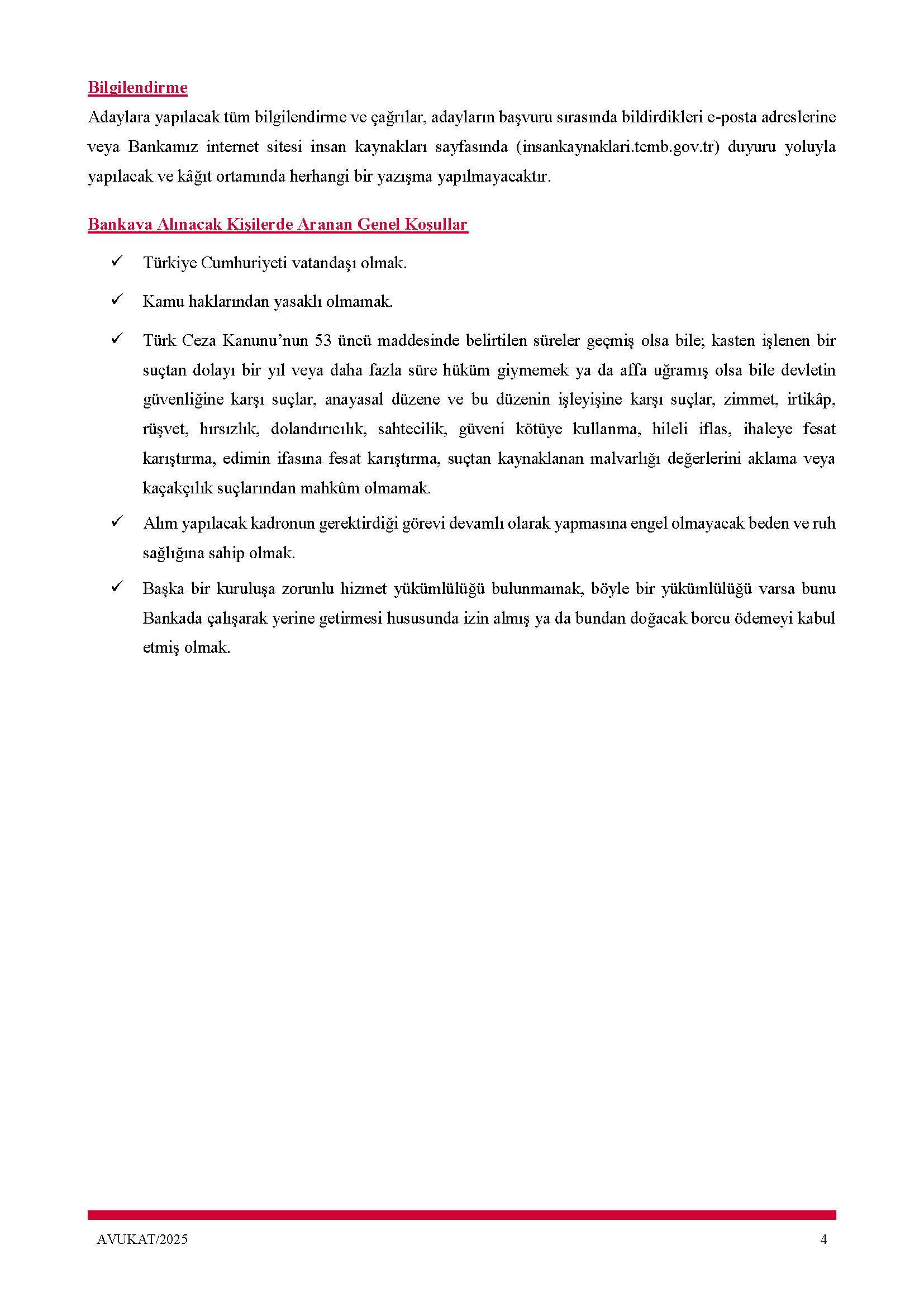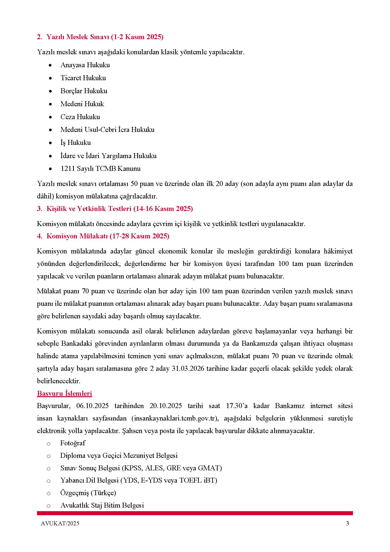 Başvuru Adresi İnsan Kaynakları internet sayfası https://insankaynaklari.tcmb.