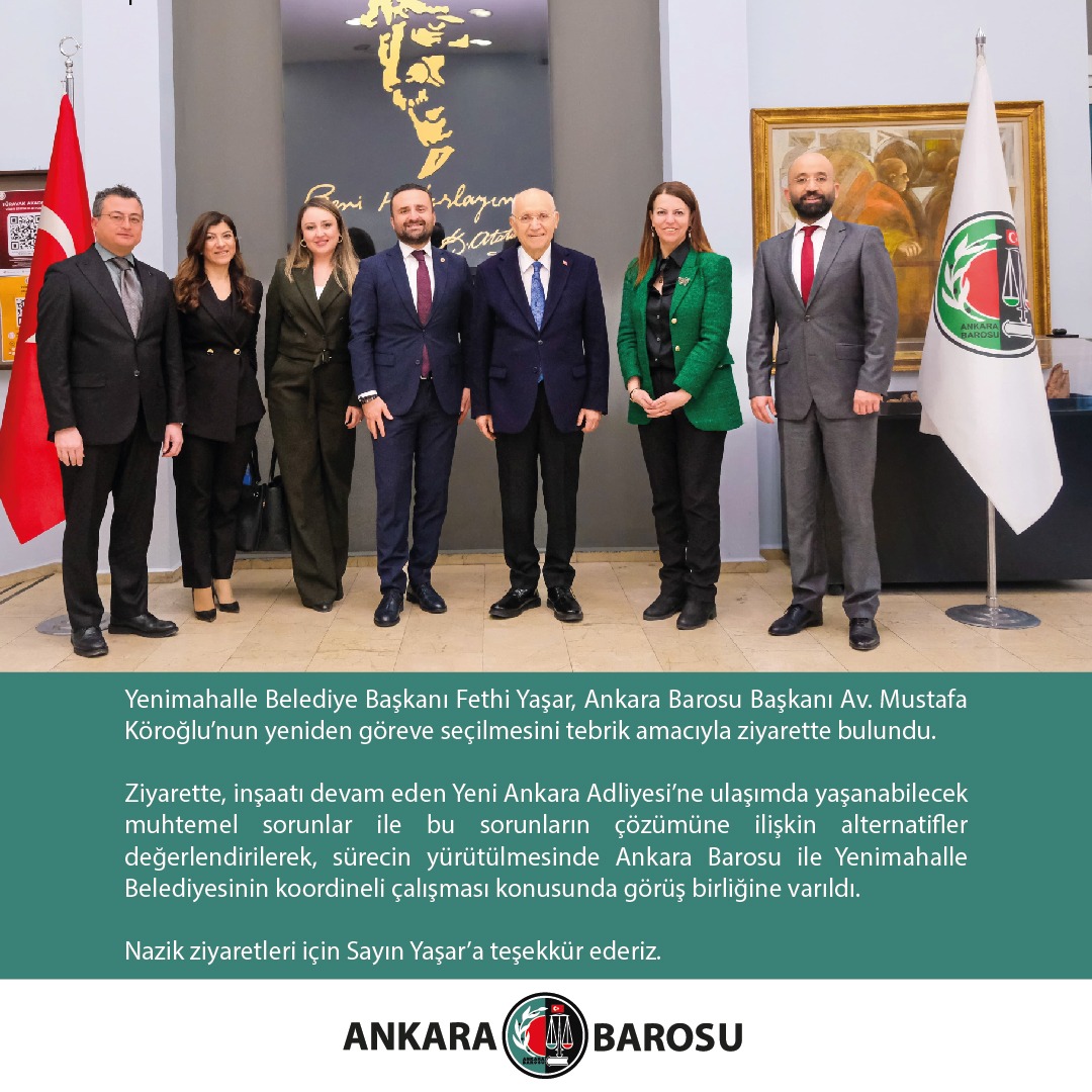 Yenimahalle Belediye Başkanı Fethi Yaşar, Ankara Barosu Başkanı Av. Mustafa Köroğlu’nun yeniden göreve seçilmesini tebrik amacıyla ziyarette bulundu.