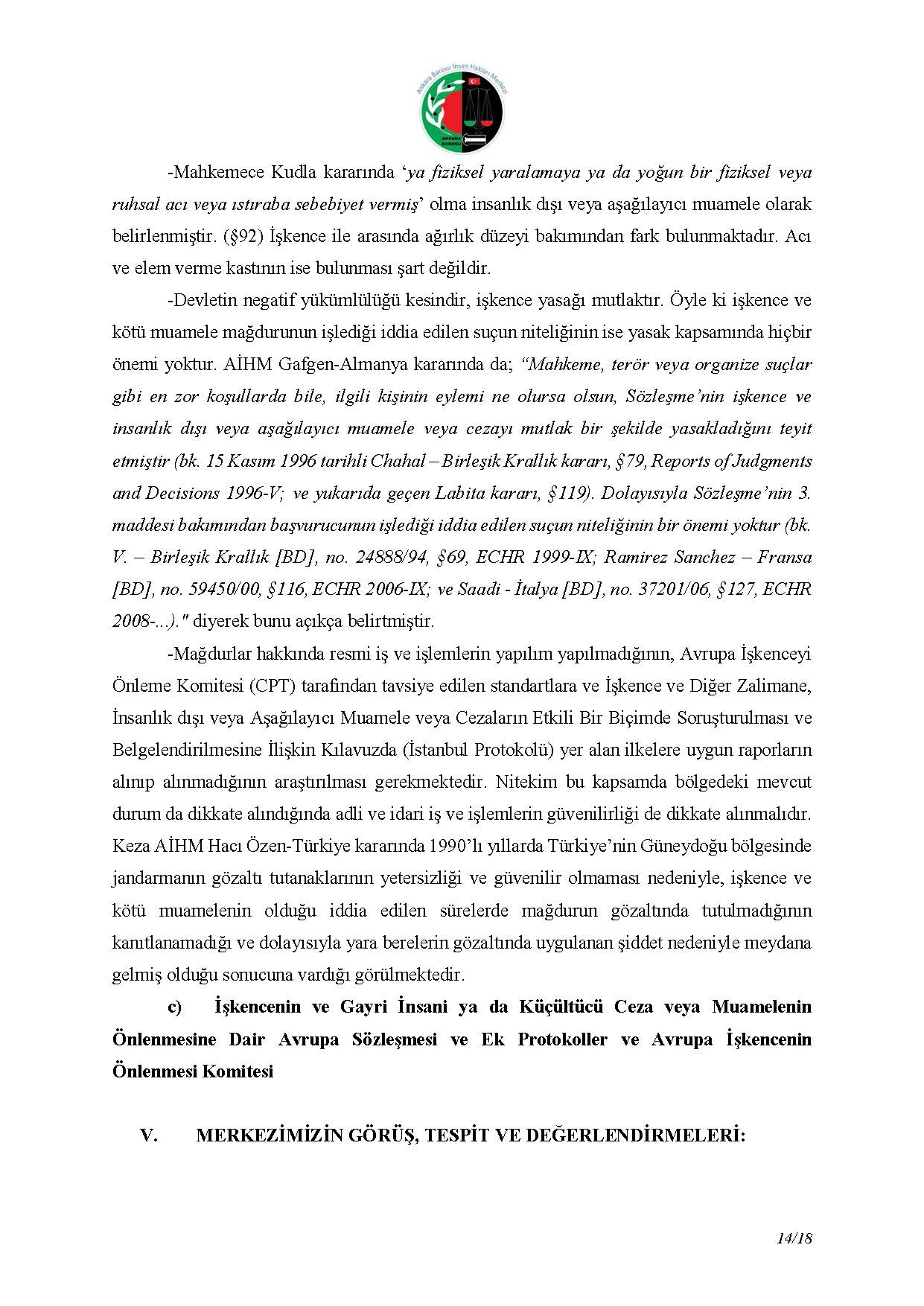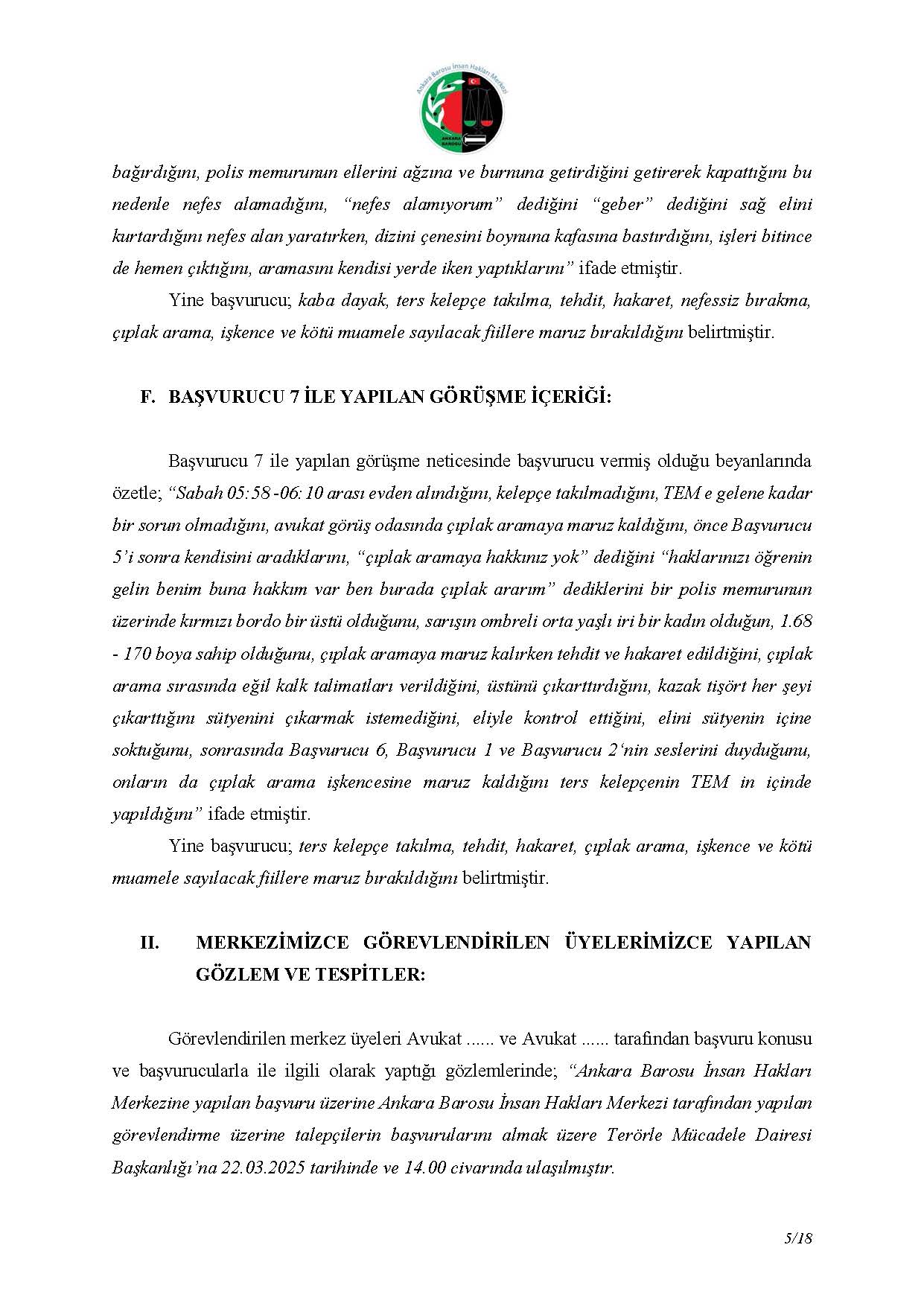ANKARA BAROSU İNSAN HAKLARI MERKEZİ BAŞVURU RAPORU