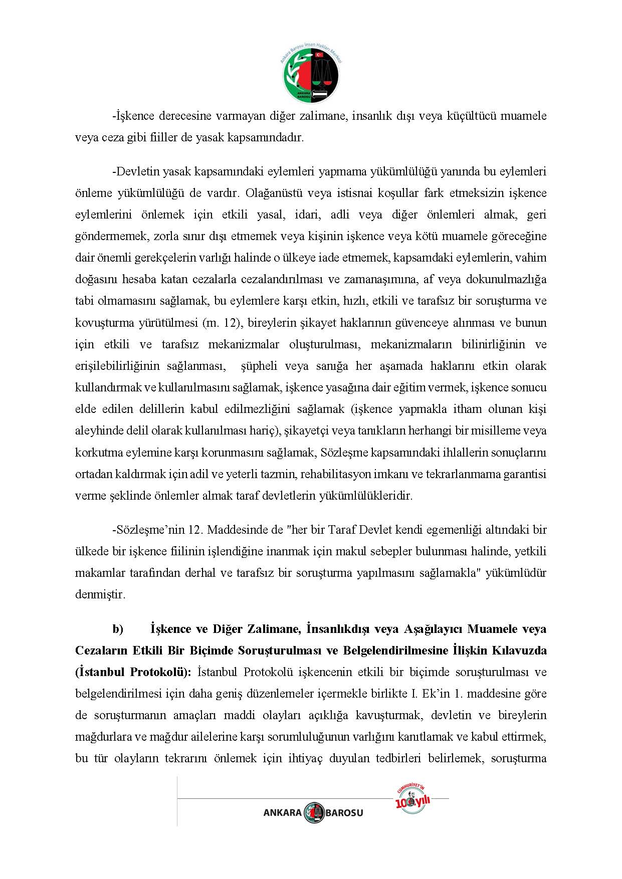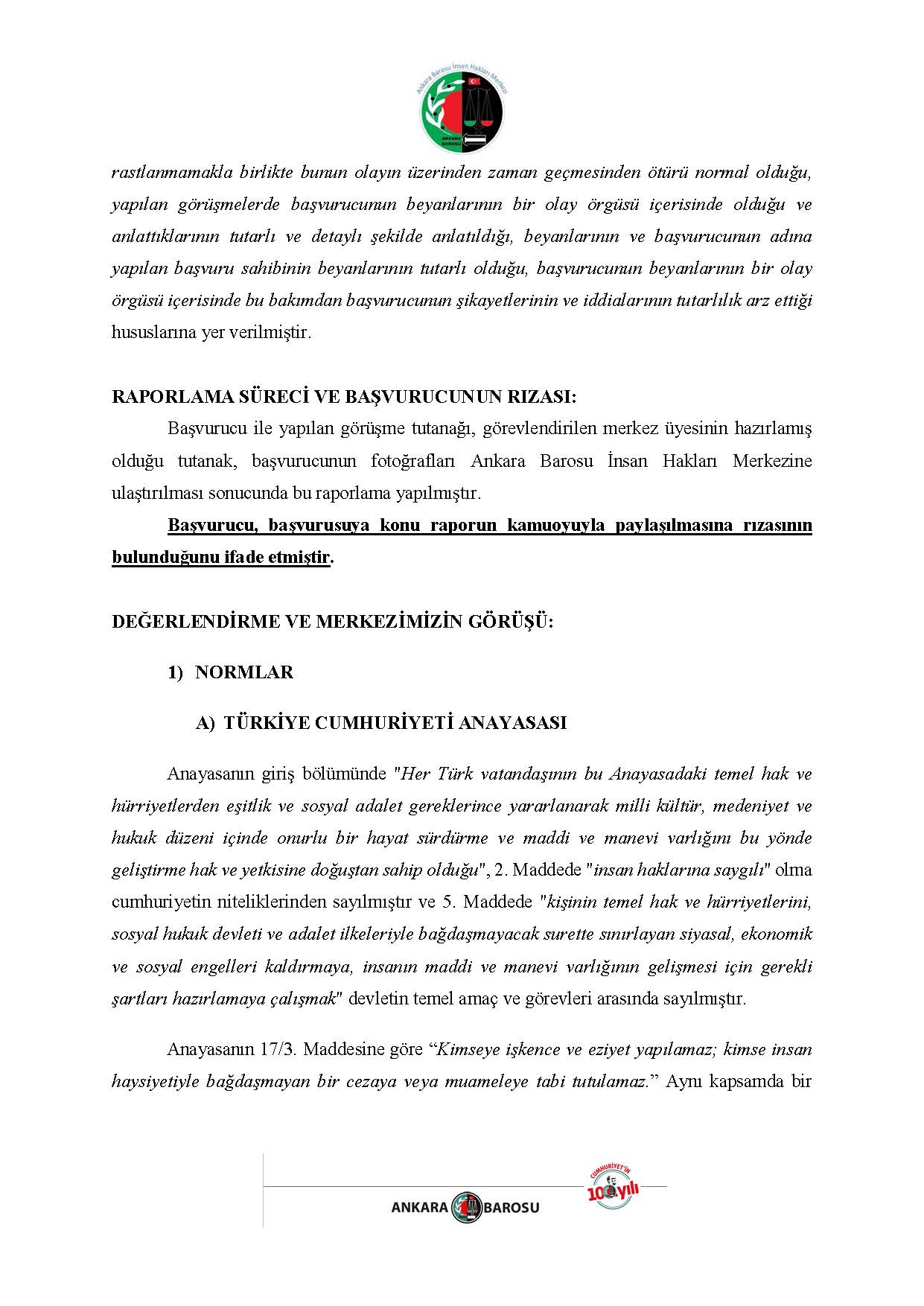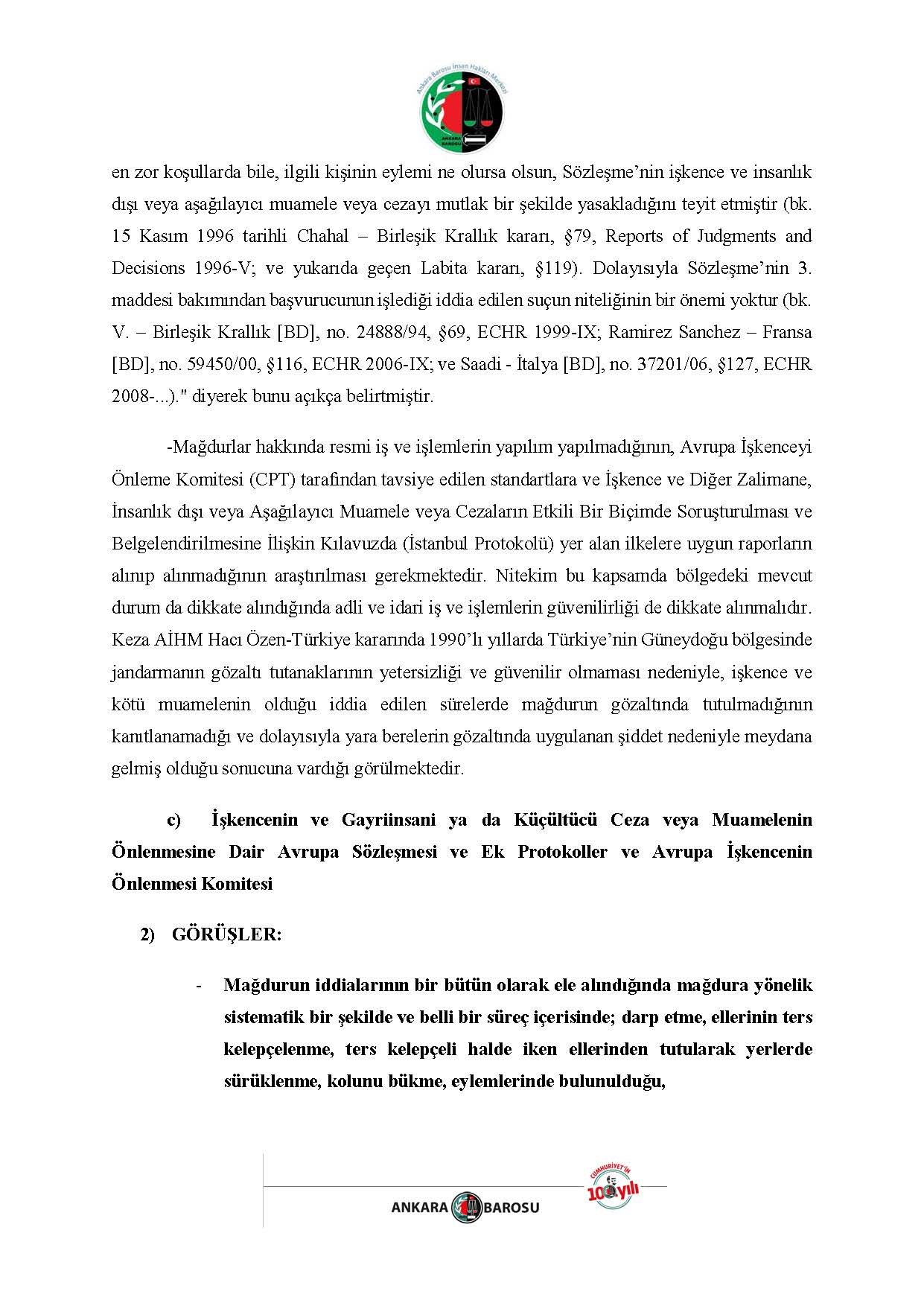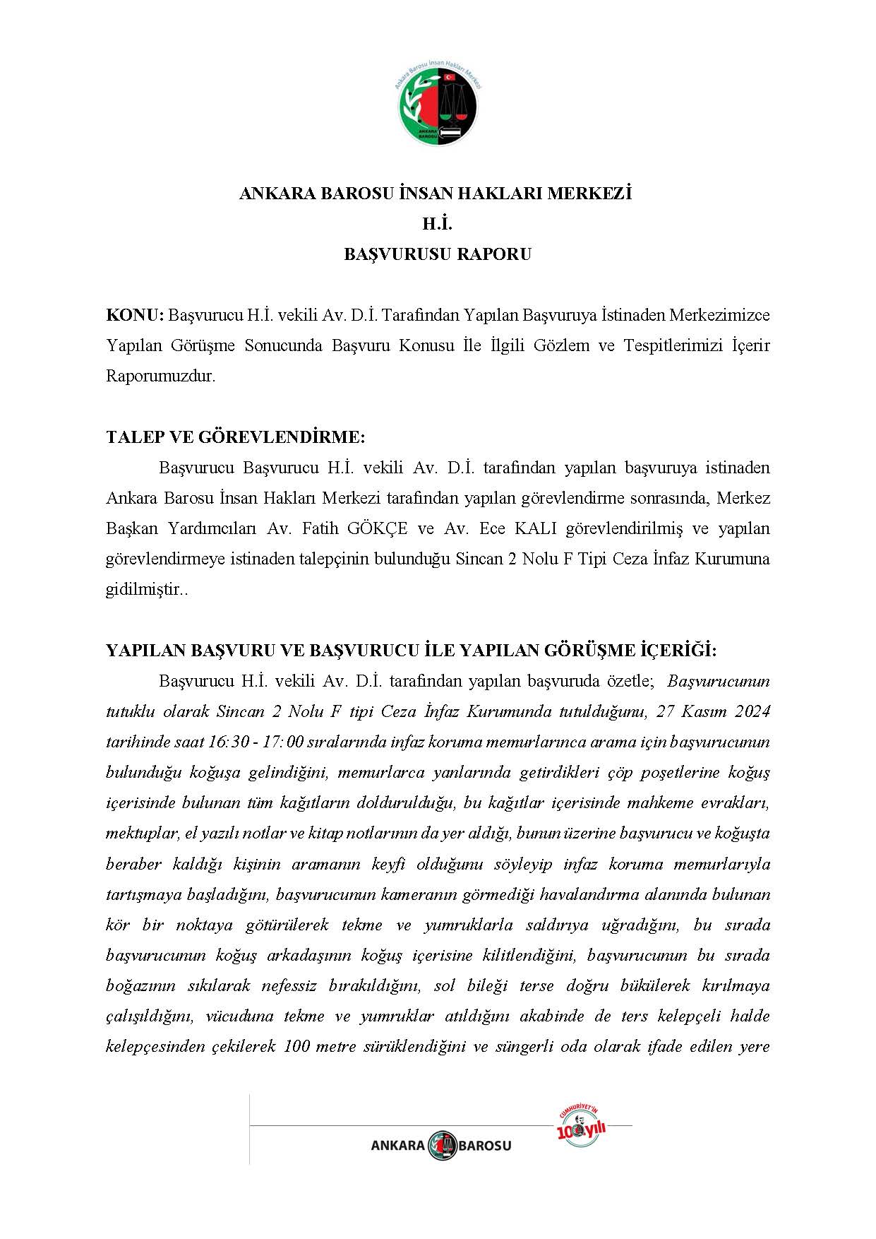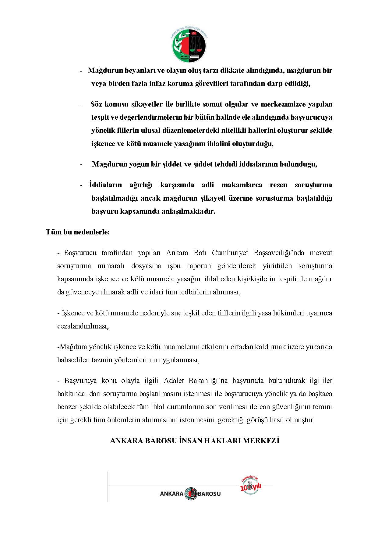 ANKARA BAROSU İNSAN HAKLARI MERKEZİ H.İ. BAŞVURUSU RAPORU