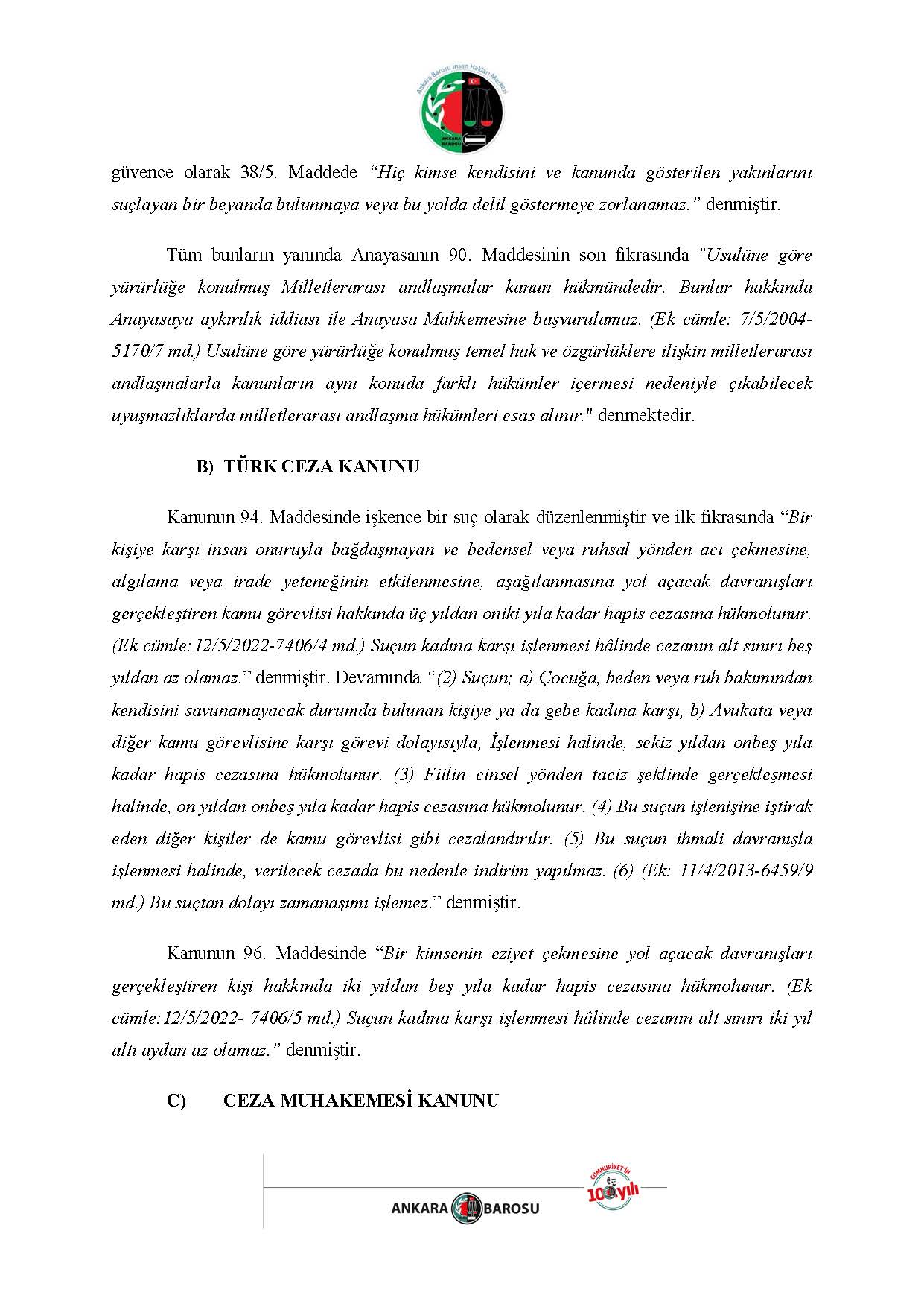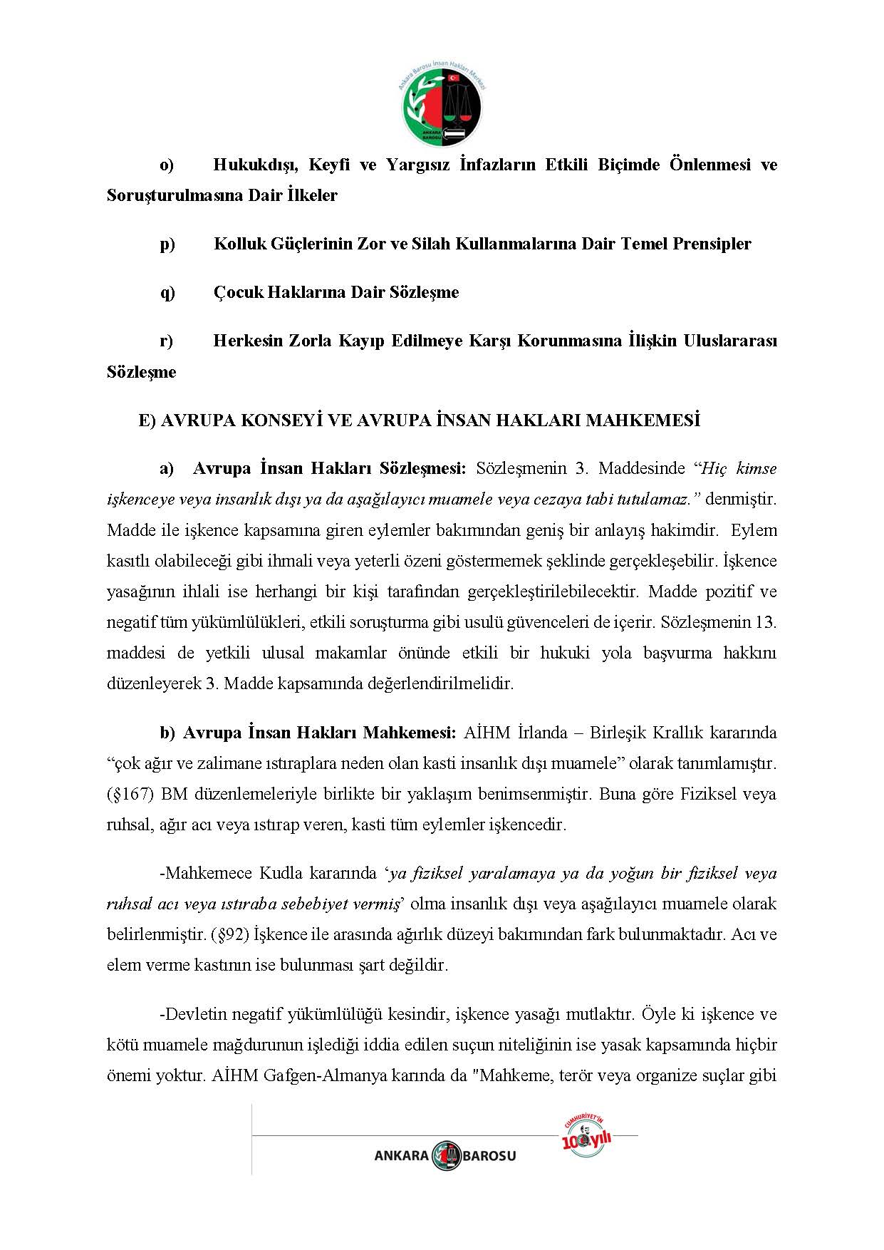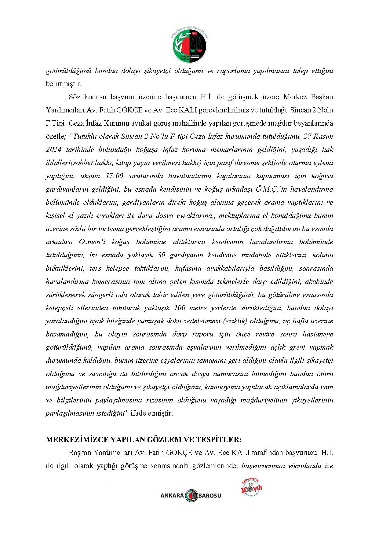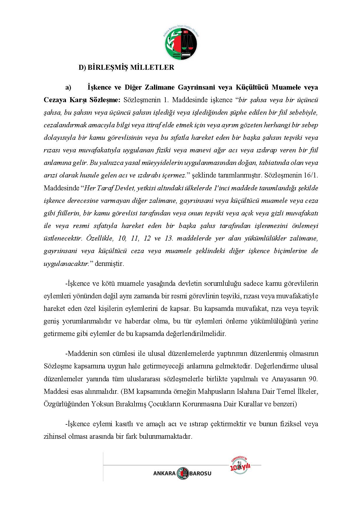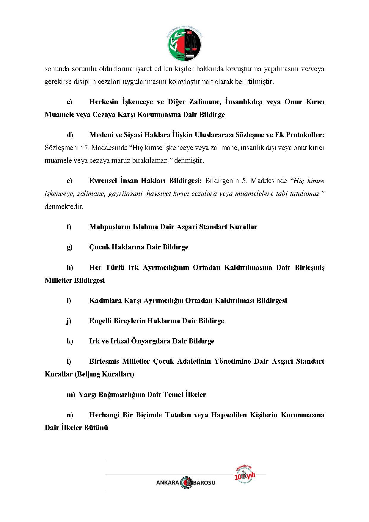 ANKARA BAROSU İNSAN HAKLARI MERKEZİ H.İ. BAŞVURUSU RAPORU
