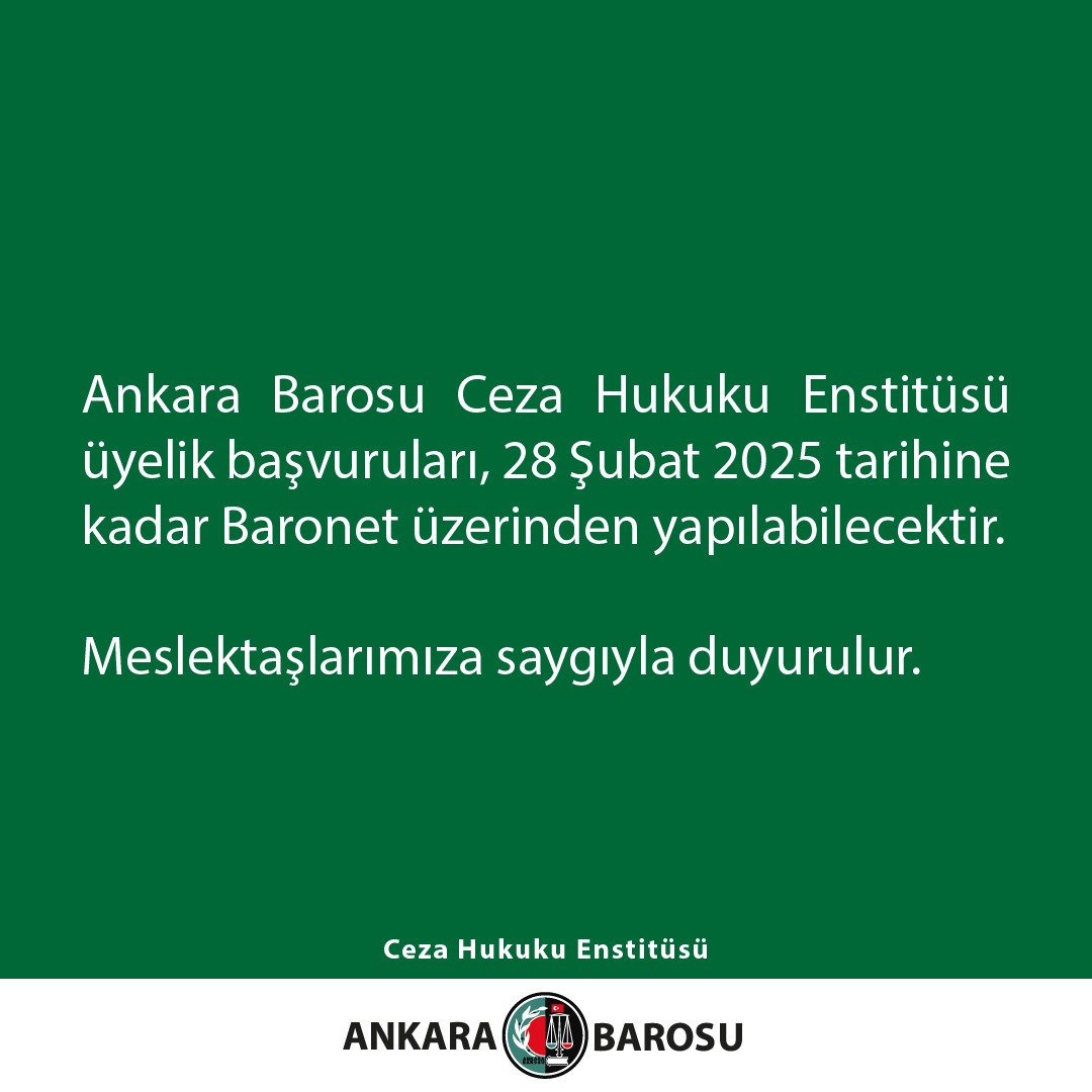 ANKARA BAROSU CEZA HUKUKU ENSTİTÜSÜ ÜYELİK BAŞVURULARI, 28 ŞUBAT 2025 TARİHİNE KADAR BARONET ÜZERİNDEN YAPILABİLECEKTİR