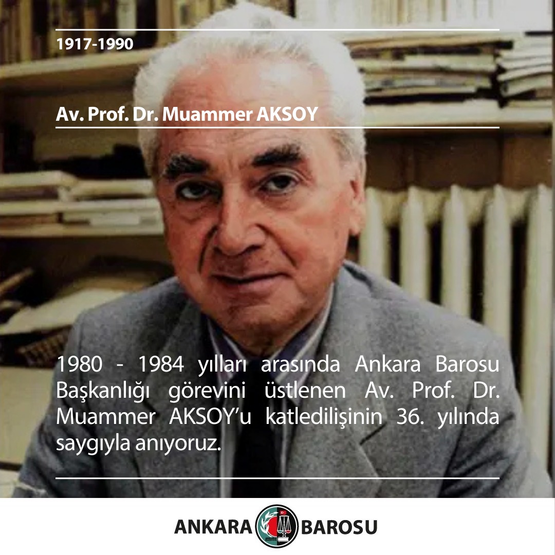 1980 - 1984 YILLARI ARASINDA ANKARA BAROSU BAŞKANLIĞI GÖREVİNİ ÜSTLENEN AV. PROF. DR. MUAMMER AKSOY’U KATLEDİLİŞİNİN 36. YILINDA SAYGIYLA ANIYORUZ.