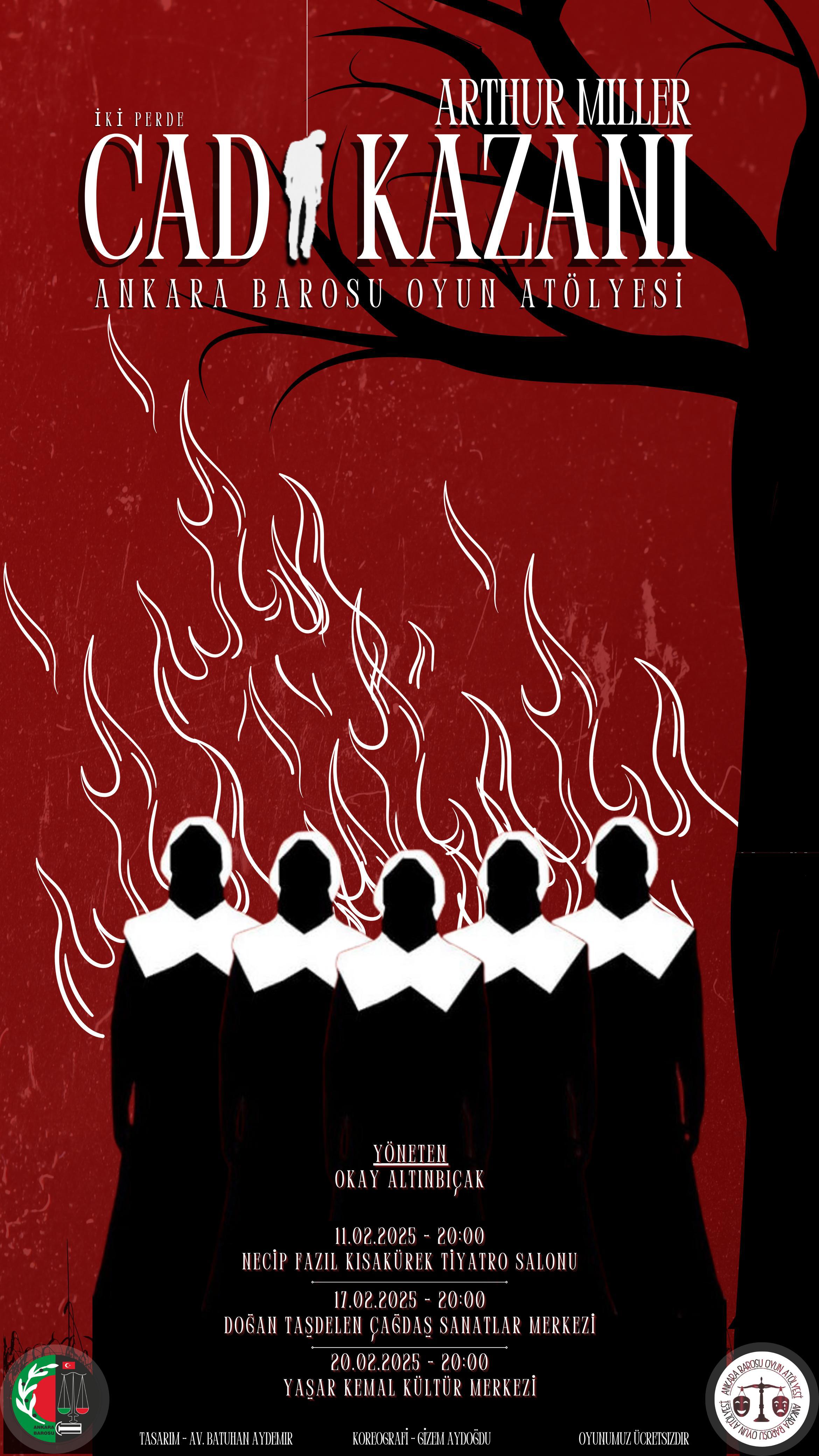 Ankara Barosu Oyun Atölyesi tarafından 11.02.2025 Salı günü saat 20.00'de Keçiören Belediyesi Necip Fazıl Kısakürek Tiyatro Salonu'nda, 17.02.2025 Pazartesi günü saat 20.00’de Çankaya Belediyesi Doğan Taşdelen Çağdaş Sanatlar Kültür Merkezi’nde, 20.02.2025 Perşembe günü saat 20.00’de Çankaya Belediyesi Yaşar Kemal Kültür Merkezi’nde "Cadı Kazanı" oyunu sahnelenecektir.
