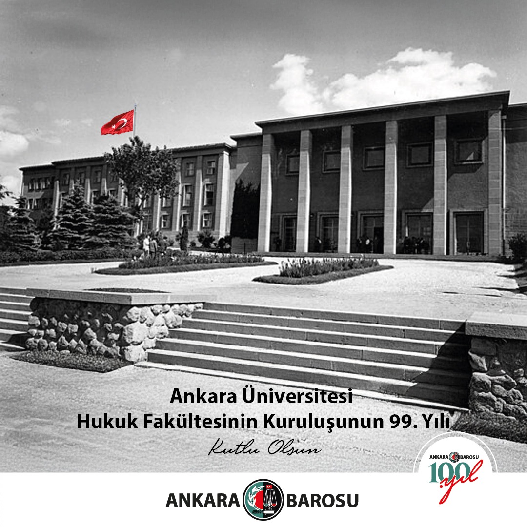 Ankara Barosu olarak; Türkiye Cumhuriyeti’nin ilk yükseköğretim kurumu olan, Ulu Önder Atatürk’ün, açılışından duyduğu mutluluğu, başka hiçbir girişimde duymadığını ifade ettiği, çağdaş hukuk ilkeleriyle binlerce hukukçu yetiştiren Ankara Üniversitesi Hukuk Fakültesinin kuruluşunun 99. yılını kutlarız.