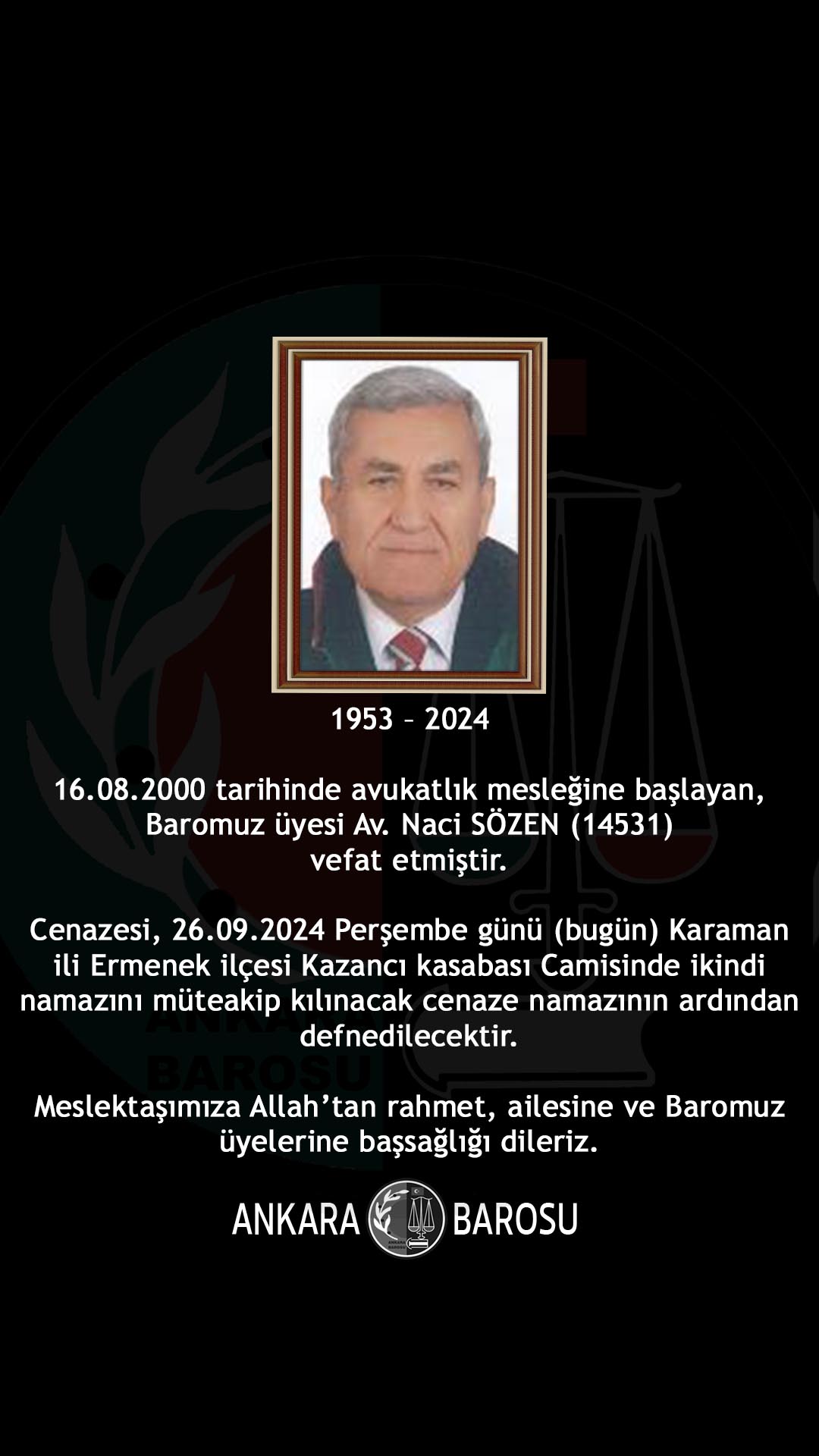 BAROMUZ ÜYESİ AV. NACİ SÖZEN (14531) VEFAT ETMİŞTİR
