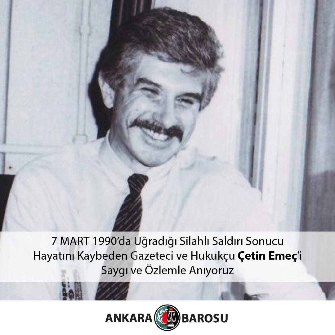 7 MART 1990'DA UĞRADIĞI SİLAHLI SALDIRI SONUCU HAYATINI KAYBEDEN GAZETECİ VE HUKUKÇU ÇETİN EMEÇ'İ SAYGI VE ÖZLEMLE ANIYORUZ