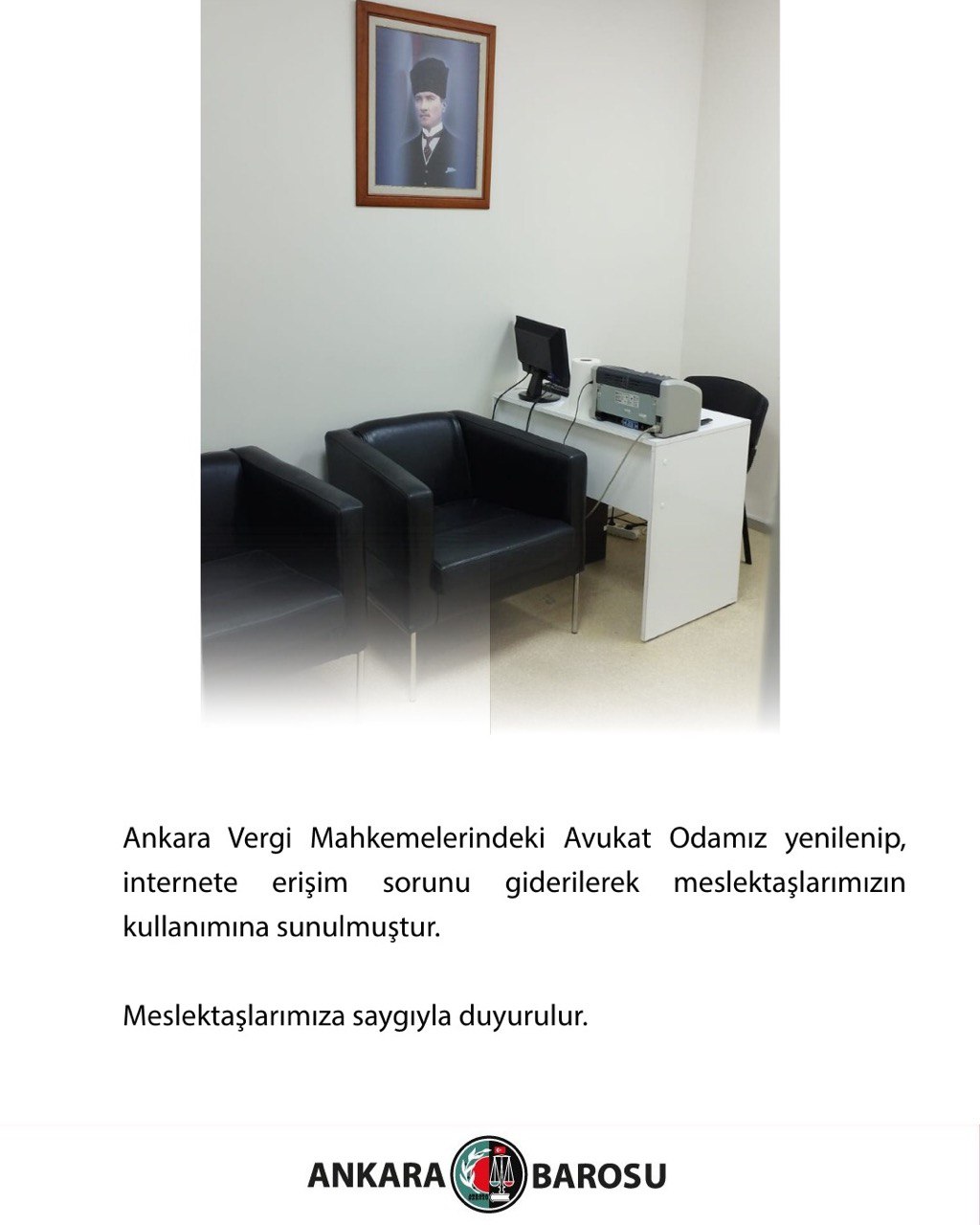 ANKARA VERGİ MAHKEMELERİNDEKİ AVUKAT ODAMIZ YENİLENİP, İNTERNETE ERİŞİM SORUNU GİDERİLEREK MESLEKTAŞLARIMIZIN KULLANIMINA SUNULMUŞTUR