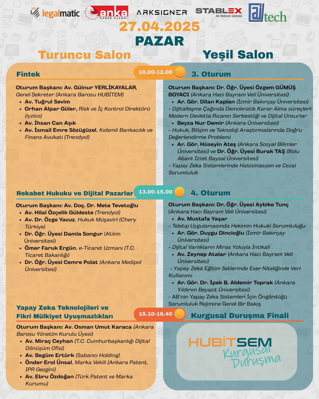 HUBİTEM tarafından düzenlenen hukuk, bilişim ve teknolojinin kesişiminde bir buluşma noktası: HUBİTSEM | Hukuk Bilişim ve Teknoloji Sempozyumu’nun ikincisi 26-27 Nisan’da TBB Litai Otel’de gerçekleşiyor! Avukatlığın dijital dönüşümünden yapay zekâ çağında hukuka, kripto varlıklardan kişisel veri korumaya kadar pek çok güncel konu ele alınacak olup uzman konuşmacılar, akademik bildiriler ve etkileşimli oturumlarla zenginleşen bu etkinlikte sizleri de aramızda görmekten mutluluk duyar, meslektaşlarımızın bilgisine sunarız.