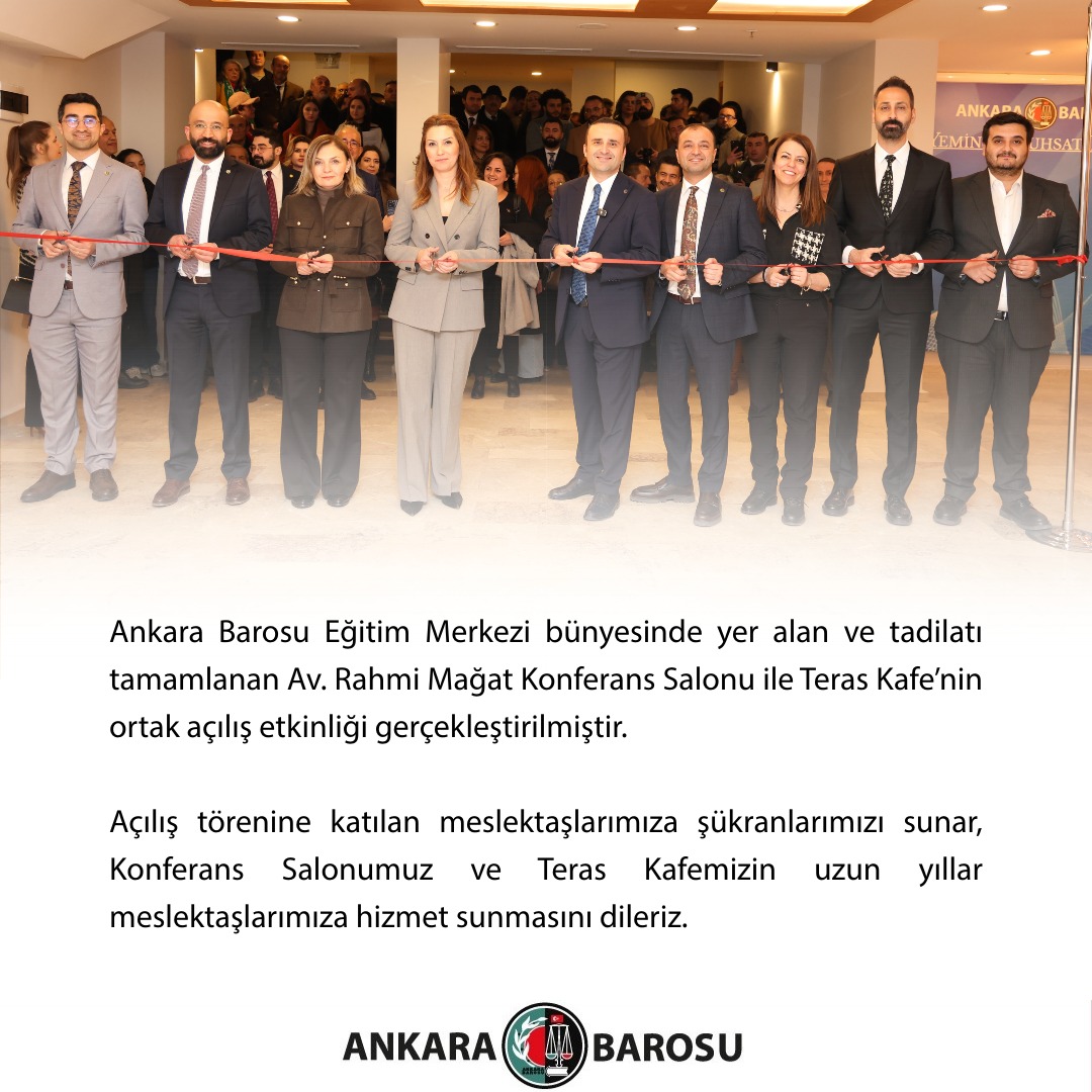 ANKARA BAROSU EĞİTİM MERKEZİ BÜNYESİNDE YER ALAN VE TADİLATI TAMAMLANAN AV. RAHMİ MAĞAT KONFERANS SALONU İLE TERAS KAFE’NİN ORTAK AÇILIŞ ETKİNLİĞİ GERÇEKLEŞTİRİLMİŞTİR.