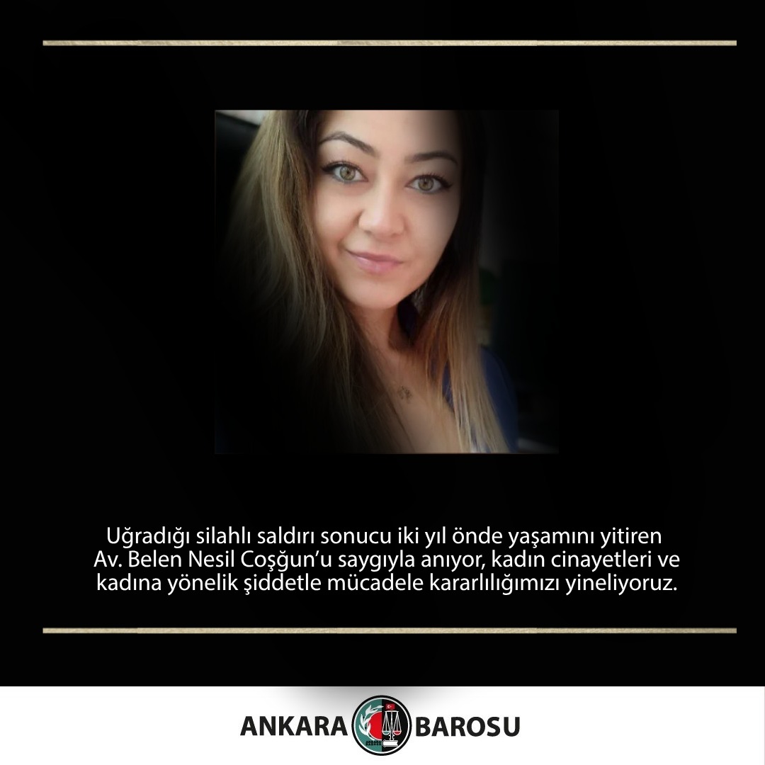 UĞRADIĞI SİLAHLI SALDIRI SONUCU İKİ YIL ÖNDE YAŞAMINI YİTİREN AV. BELEN NESİL COŞĞUN’U SAYGIYLA ANIYOR, KADIN CİNAYETLERİ VE KADINA YÖNELİK ŞİDDETLE MÜCADELE KARARLILIĞIMIZI YİNELİYORUZ.