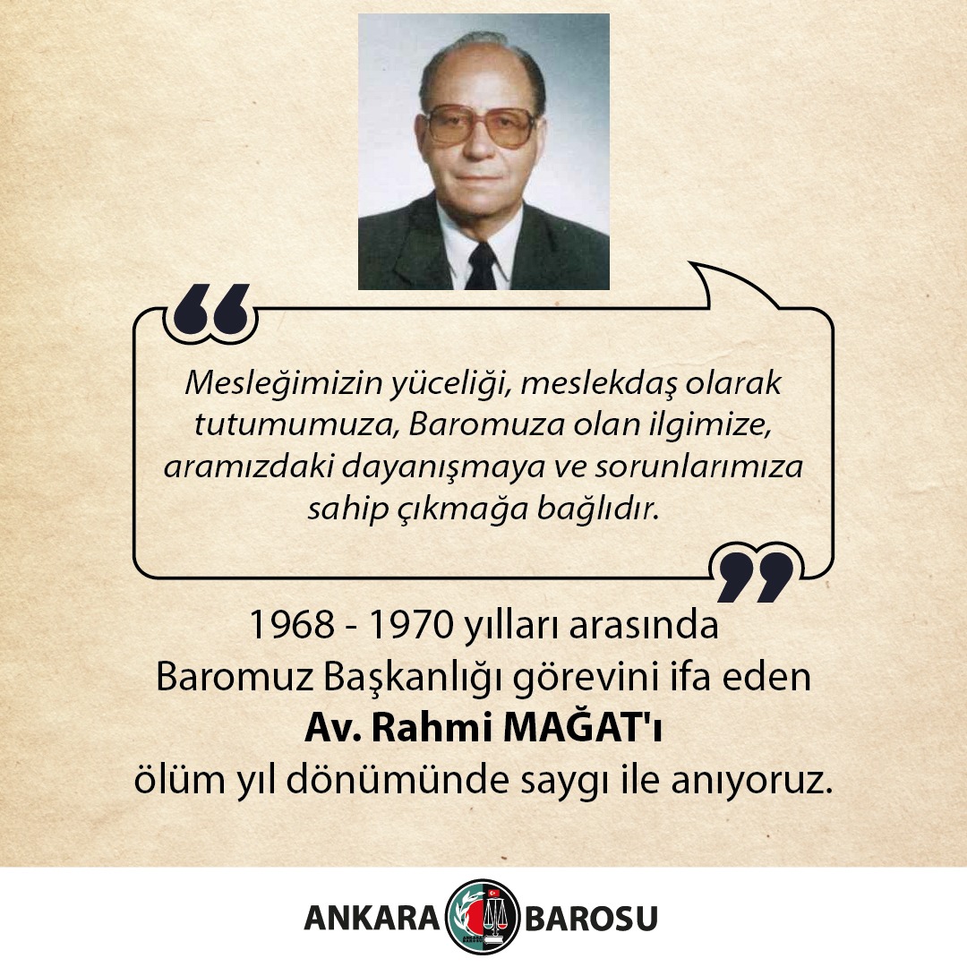 1968 - 1970 YILLARI ARASINDA BAROMUZ BAŞKANLIĞI GÖREVİNİ İFA EDEN AV. RAHMİ MAĞAT'I ÖLÜM YIL DÖNÜMÜNDE SAYGI İLE ANIYORUZ