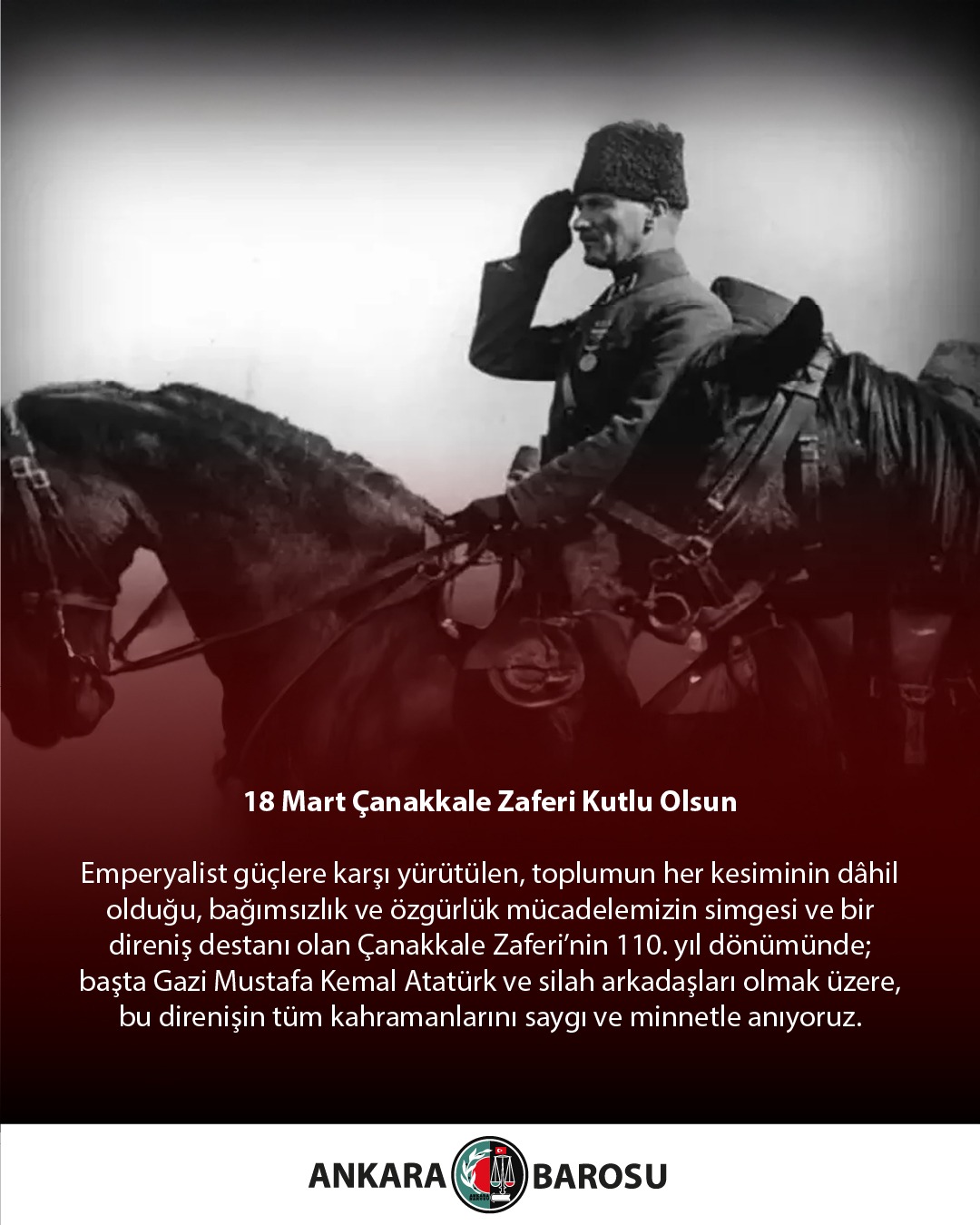 Emperyalist güçlere karşı yürütülen, toplumun her kesiminin dâhil olduğu, bağımsızlık ve özgürlük mücadelemizin simgesi ve bir direniş destanı olan Çanakkale Zaferi’nin 110. yıl dönümünde; başta Gazi Mustafa Kemal Atatürk ve silah arkadaşları olmak üzere, bu direnişin tüm kahramanlarını saygı ve minnetle anıyoruz.