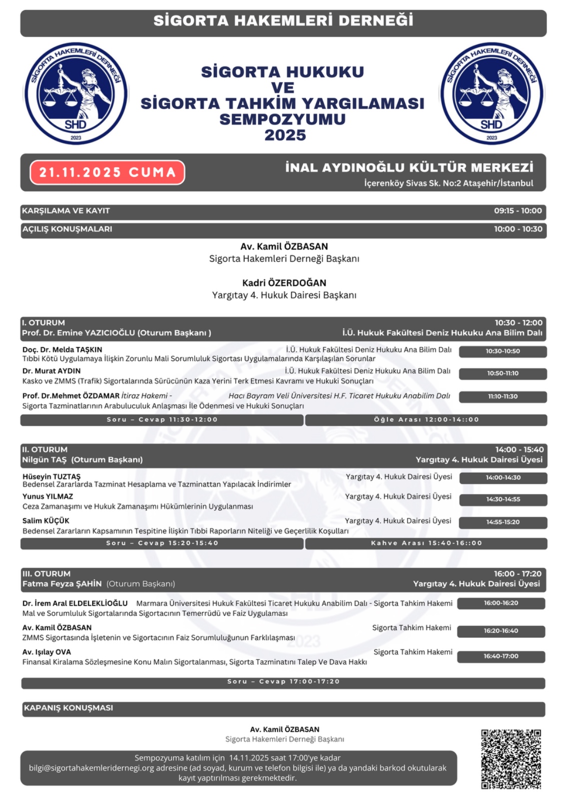 SİGORTA HAKEMLERİ DERNEĞİ TARAFINDAN 21 KASIM 2025 TARİHİNDE “SİGORTA HUKUKU VE SİGORTA TAHKİM YARGILAMASI” SEMPOZYUMU GERÇEKLEŞTİRİLECEKTİR