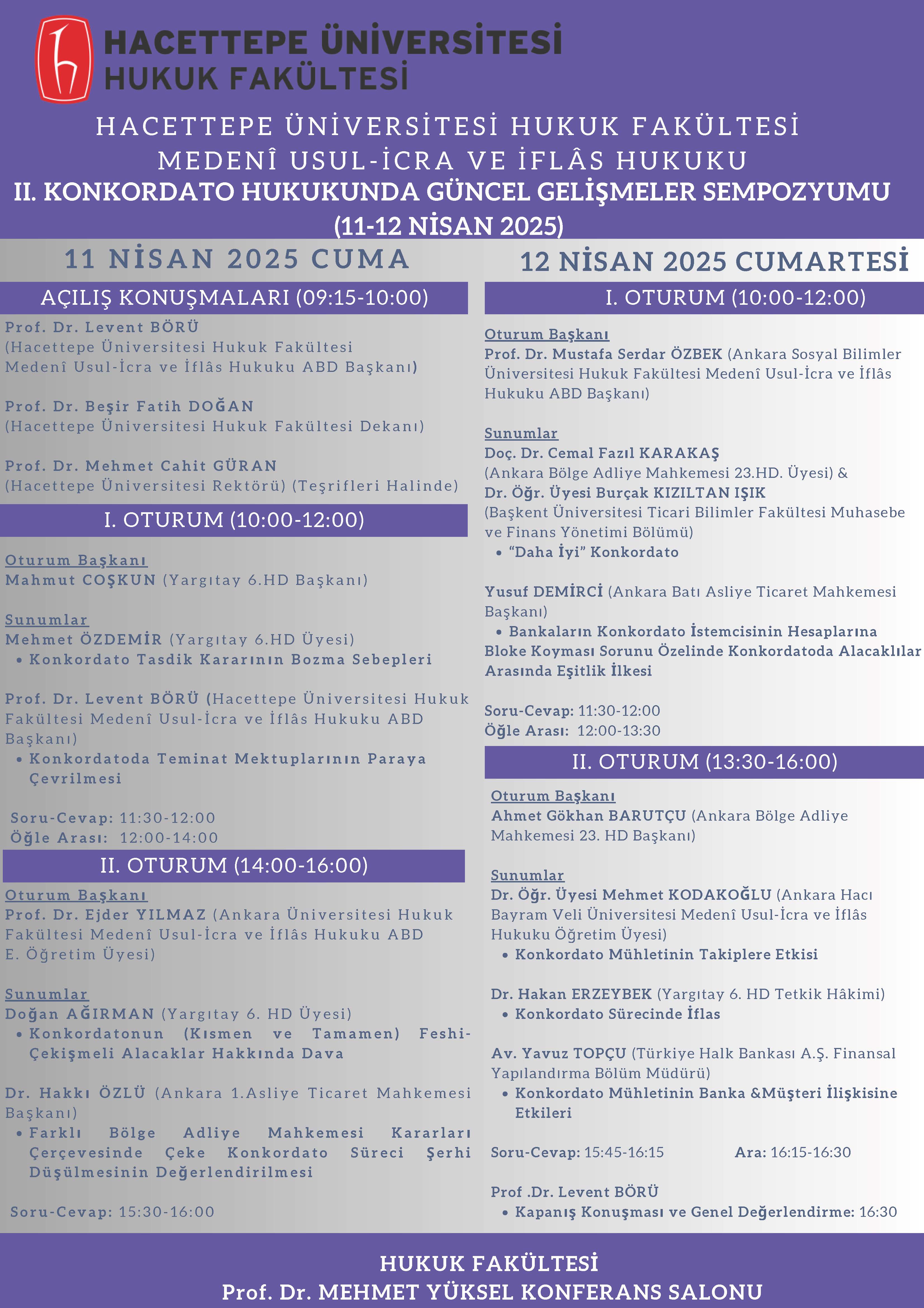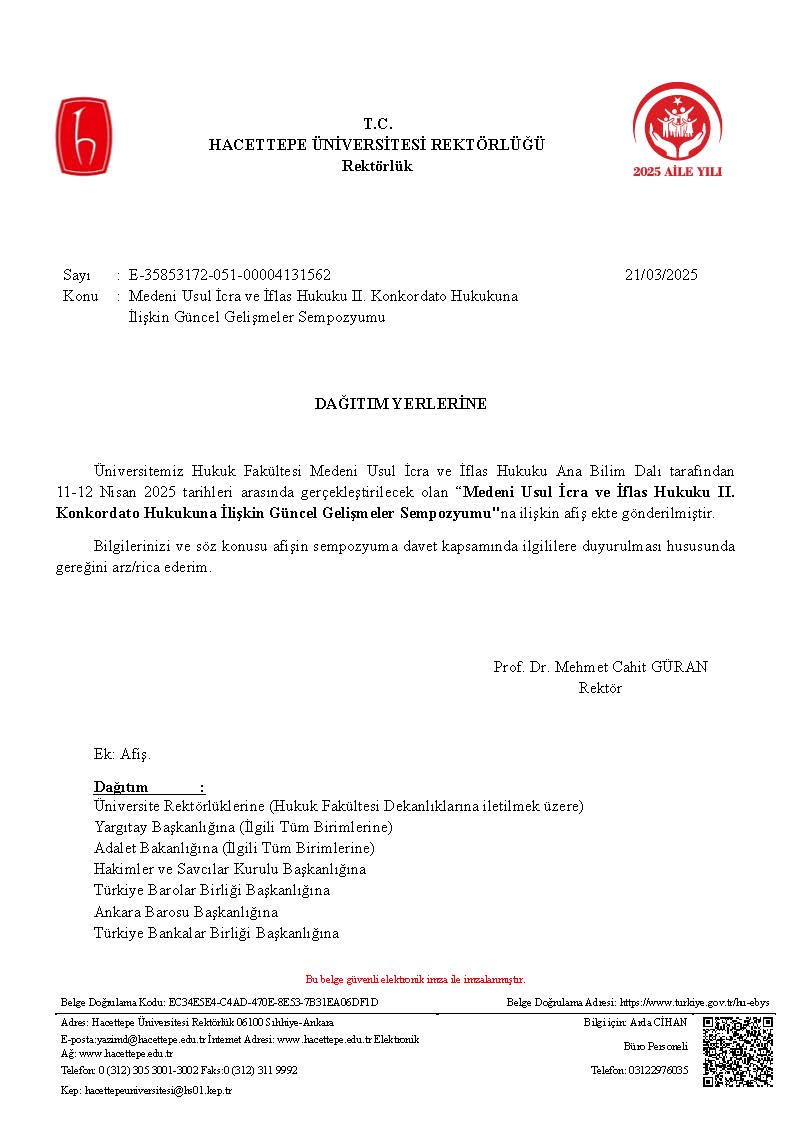 HACETTEPE ÜNİVERSİTESİ REKTÖRLÜĞÜ'NÜN MEDENİ USUL İCRA VE İFLAS HUKUKU II. KONKORDATO HUKUKUNA İLİŞKİN GÜNCEL GELİŞMELER SEMPOZYUMU KONULU DUYURUSU