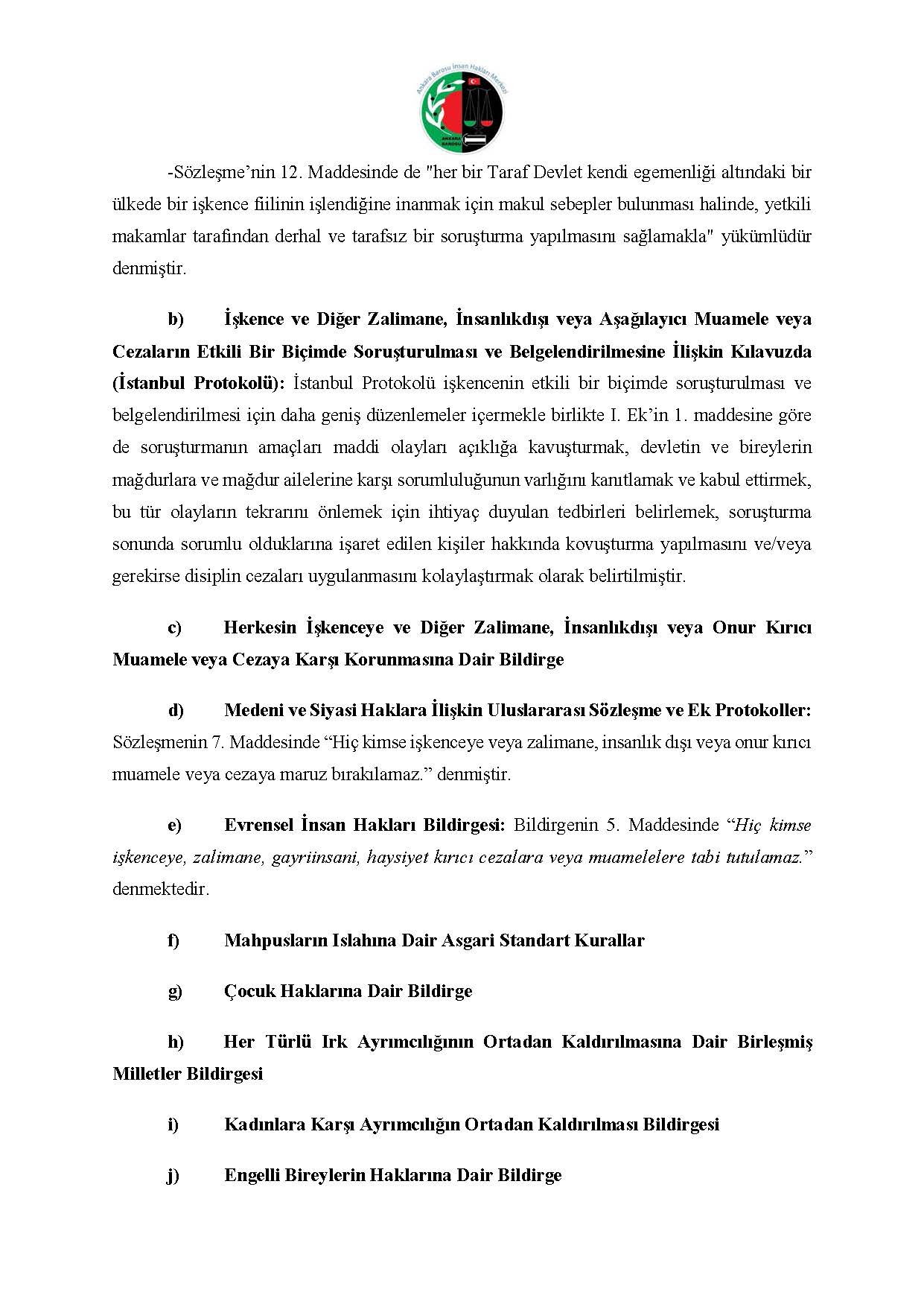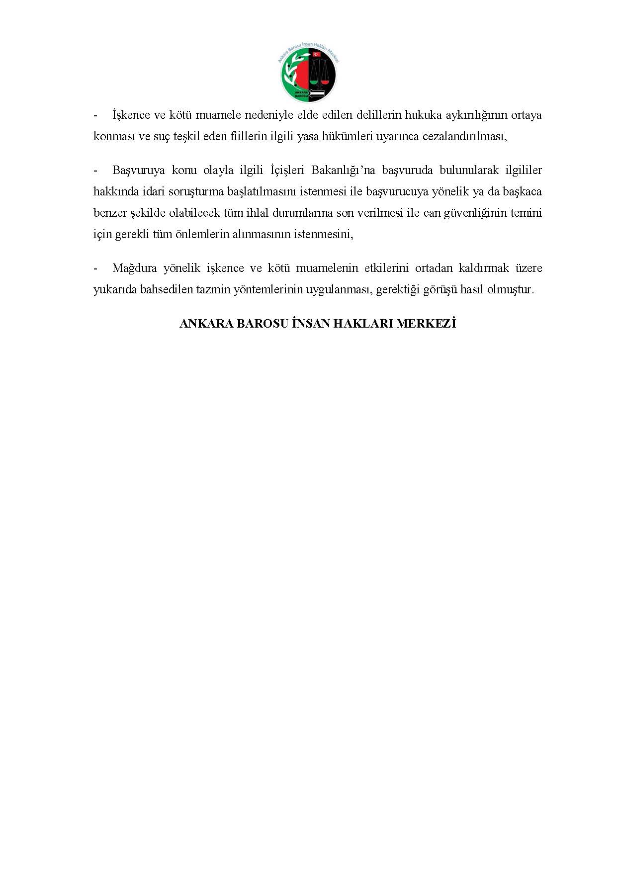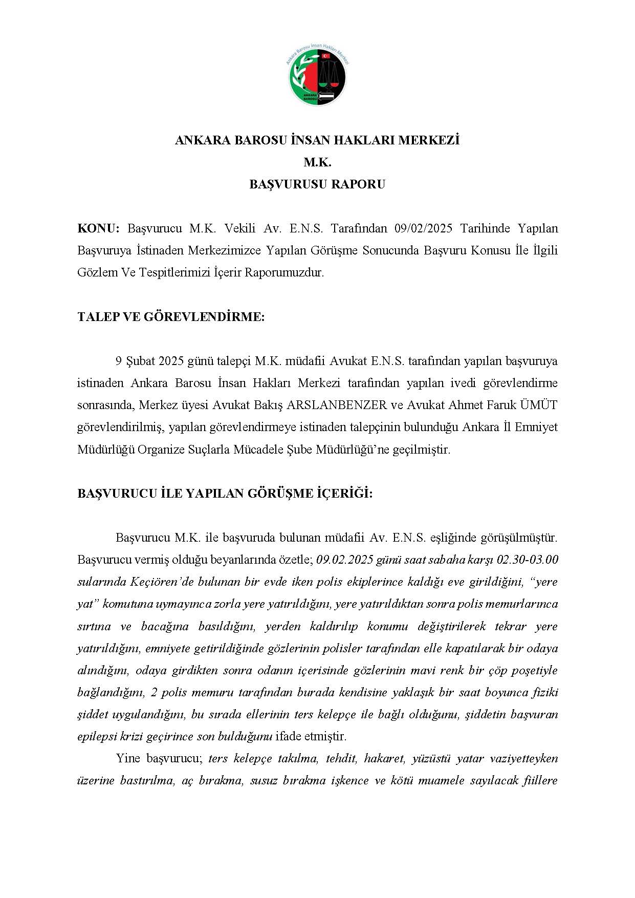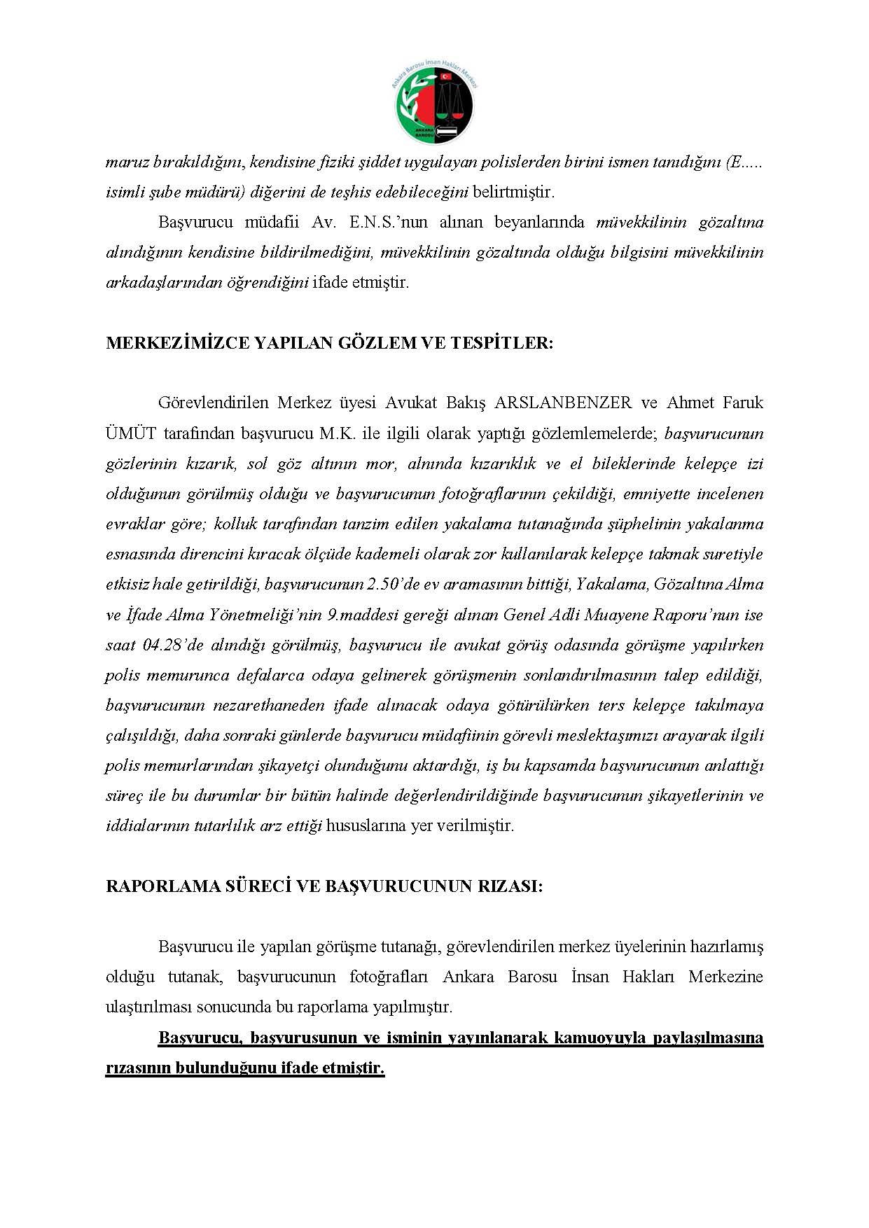 ANKARA BAROSU İNSAN HAKLARI MERKEZİ M.K. BAŞVURUSU RAPORU