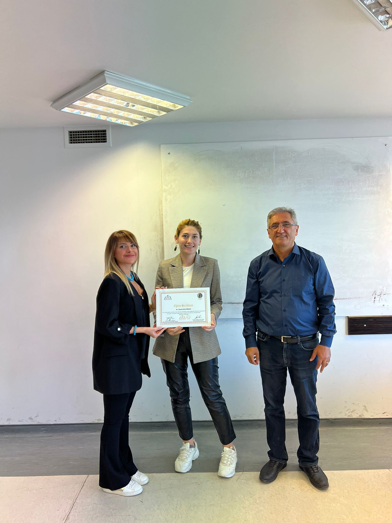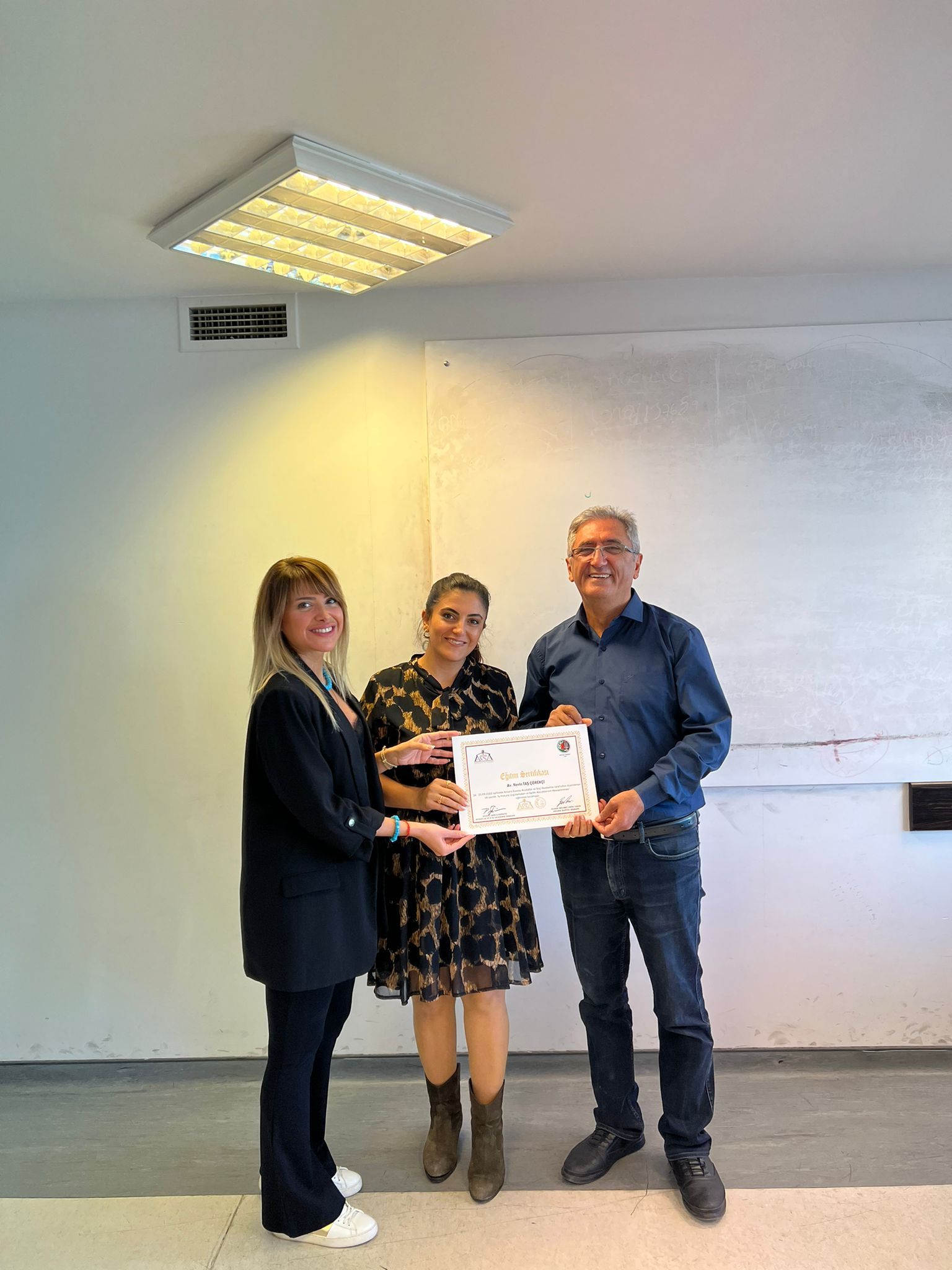 Av. Muzaffer Karayel’in konuşmacı olarak katıldığı eğitimin sonunda katılım gösteren meslektaşlarımıza sertifikaları, AVSA Başkanı Av. Damla Eröncel tarafından takdim edildi.