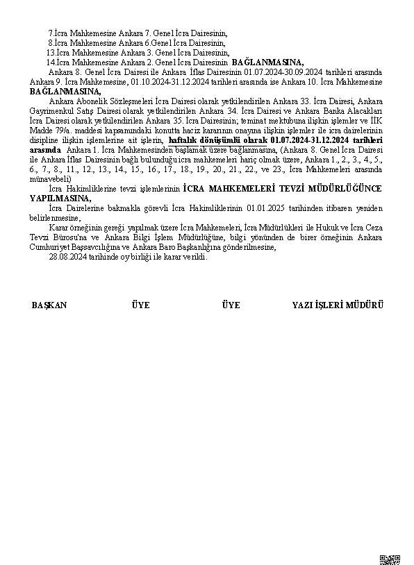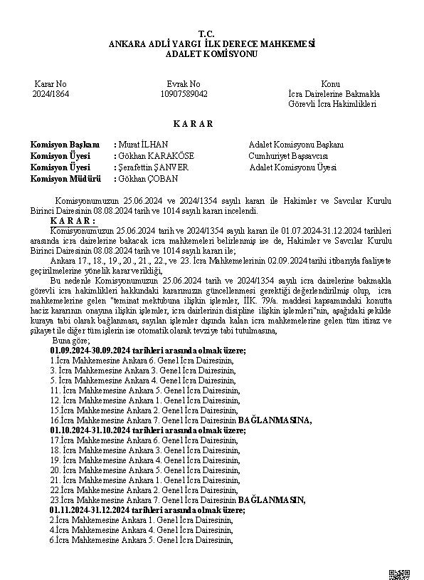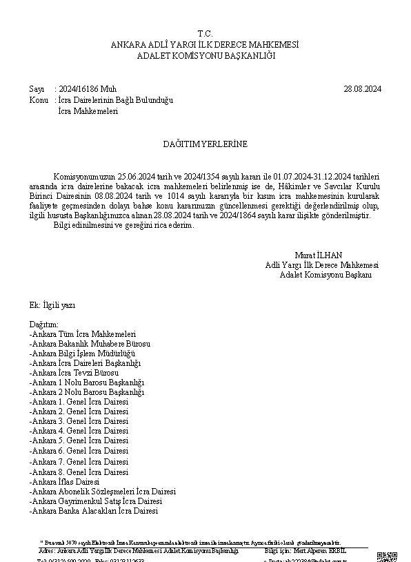 İCRA DAİRELERİNİN BAĞLI BULUNDUĞU İCRA MAHKEMELERİNE İLİŞKİN T.C. ANKARA ADLİ YARGI İLK DERECE MAHKEMESİ ADALET KOMİSYONU BAŞKANLIĞI DUYURUSU